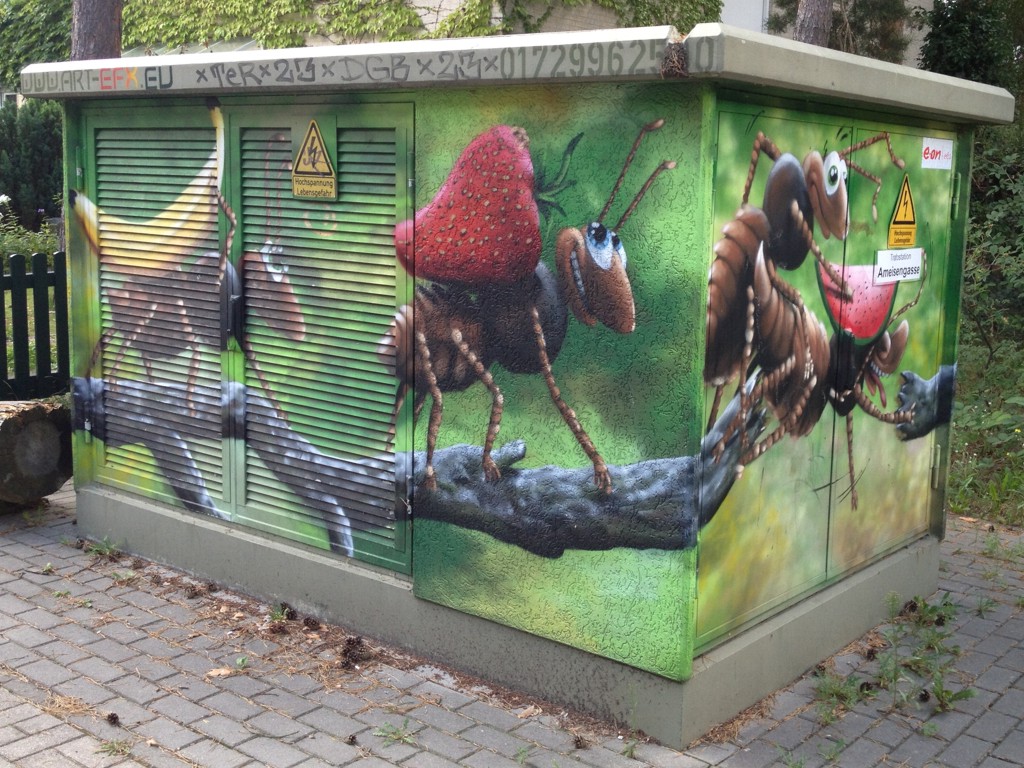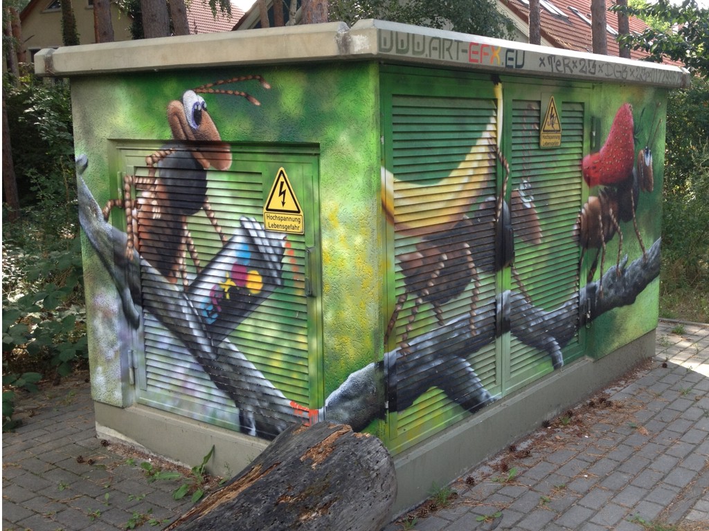 Dort wurde sogar ein Trafohäuschen zum Thema bemalt: