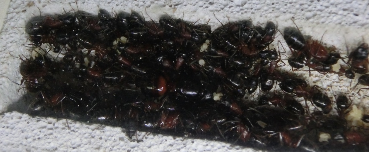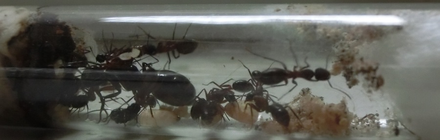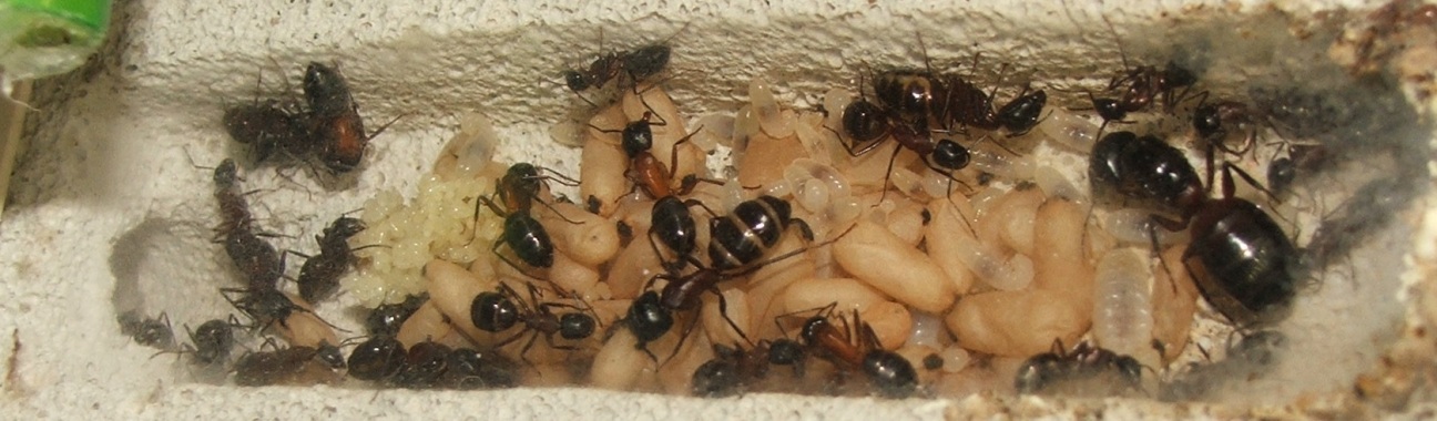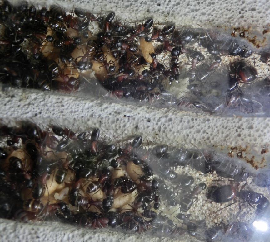 im Gegensatz zu der kleinen Camponotus herculeanus Kolonie verpuppten sich so bei meinen Zimmertemperaturen keine Larven
