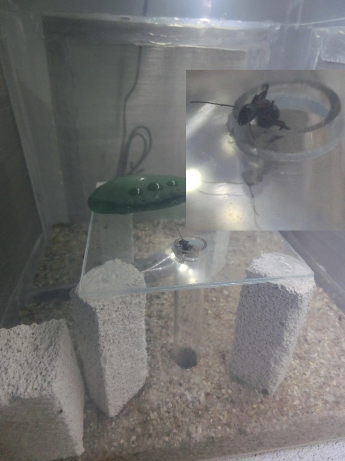 Sie fressen recht gut, ab und an Honigwasser, hin und wieder ein Heimchen oder eine Grille.