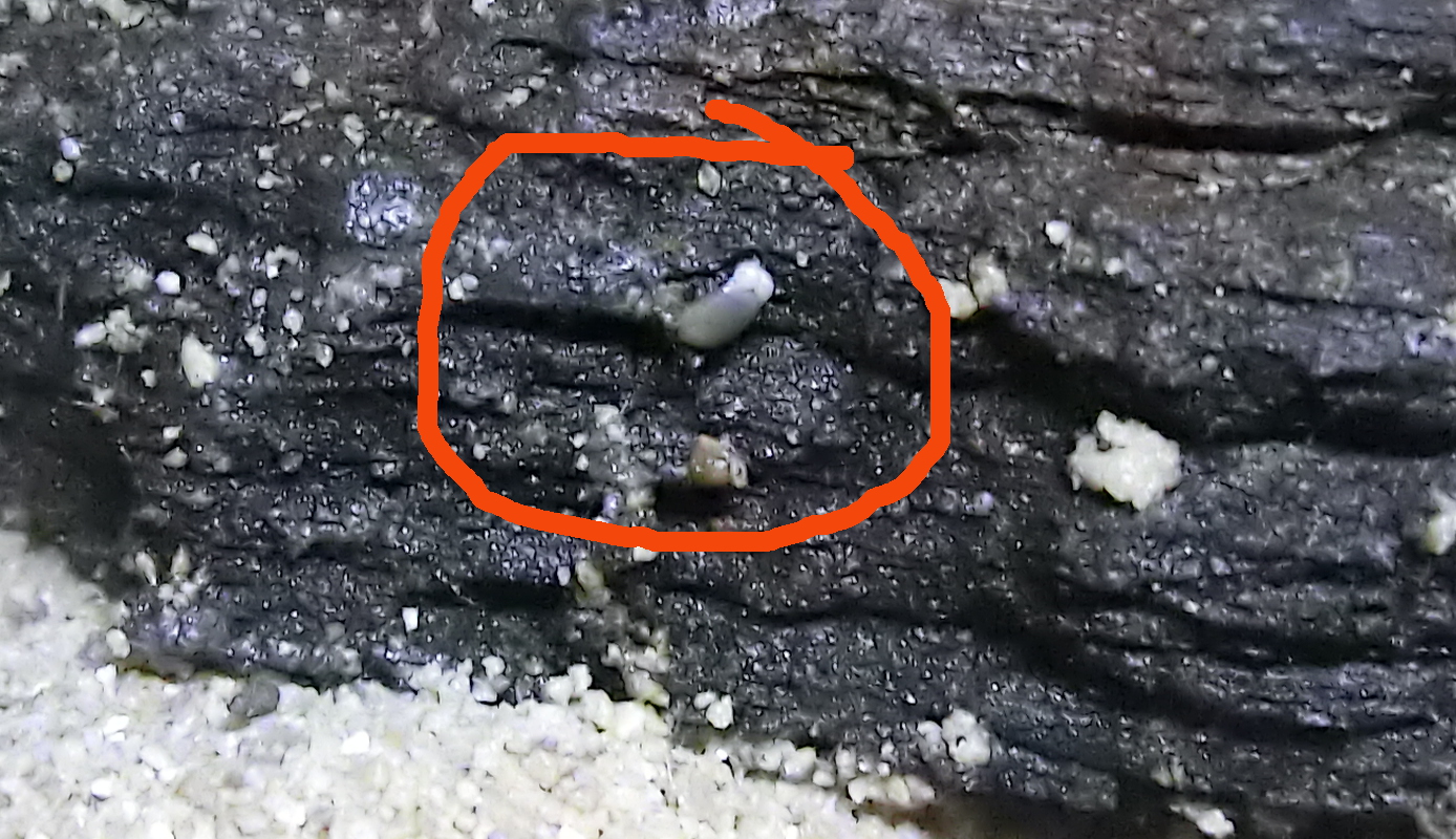 They are also expressing the same behaviour with other things that I can't associate to eggs, larvae, pupae. They're dark grey little things, with one edge white (circled in attached pictures).