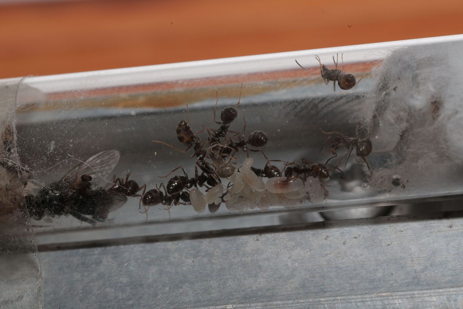 ich durfte beobachten wie eine meiner Camponotus ligniperdus Gynen ihre erste Pygmäenpuppe öffnet.