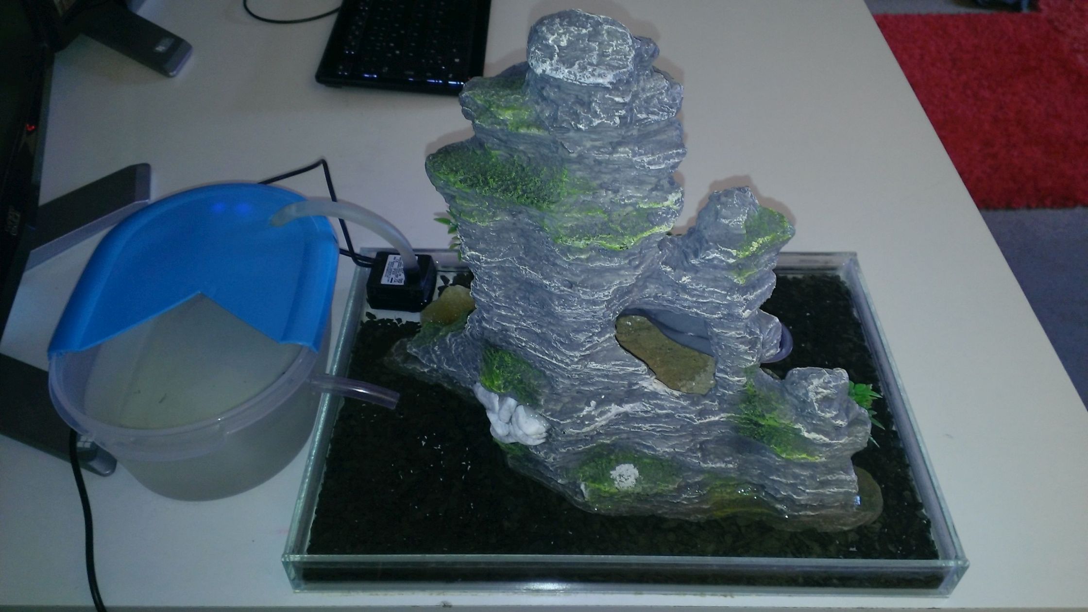 Um das Wasser sauber zu halten habe ich folgendes gebastelt (Prototyp/Sieht noch nicht sehr schick aus):