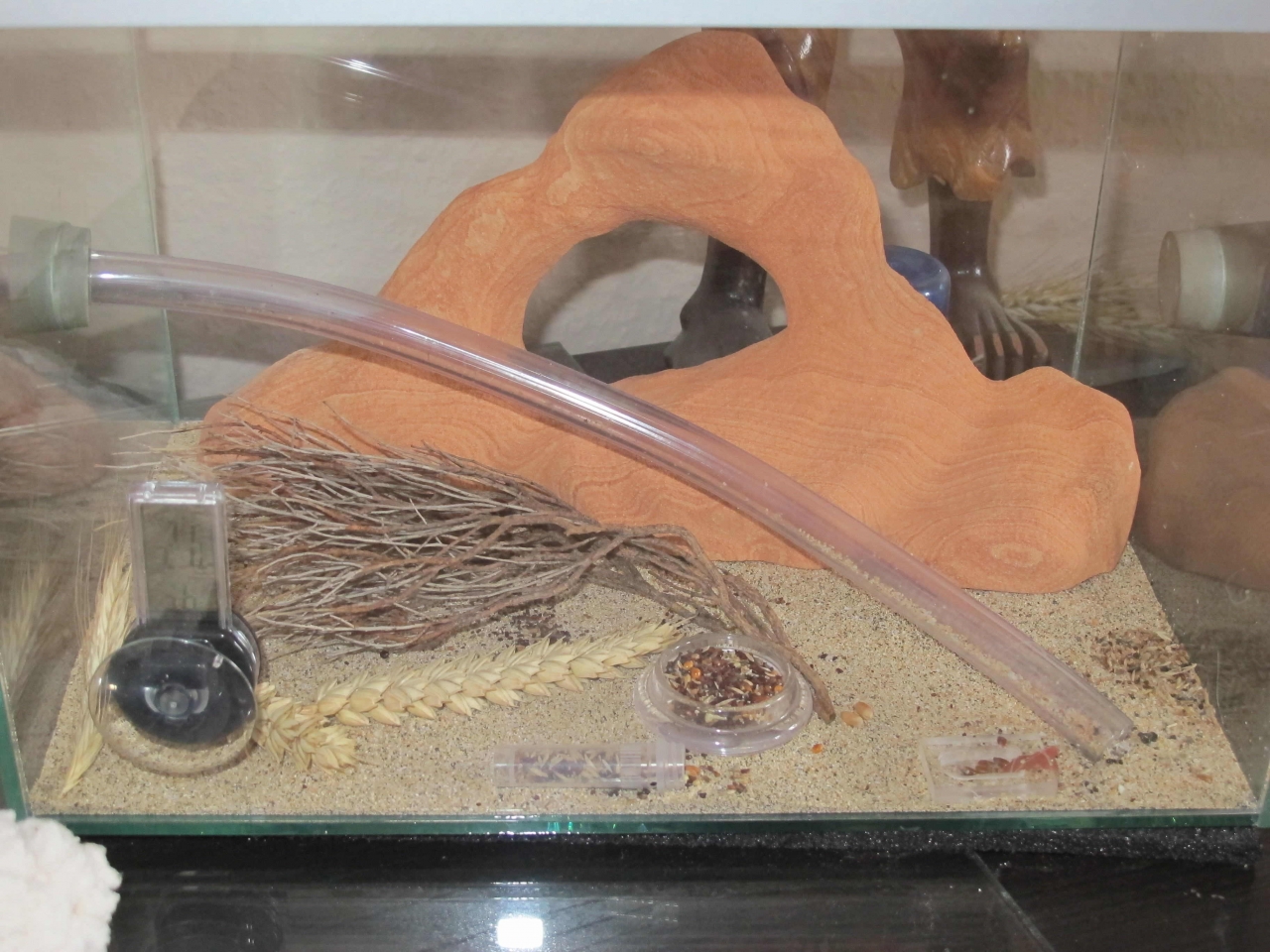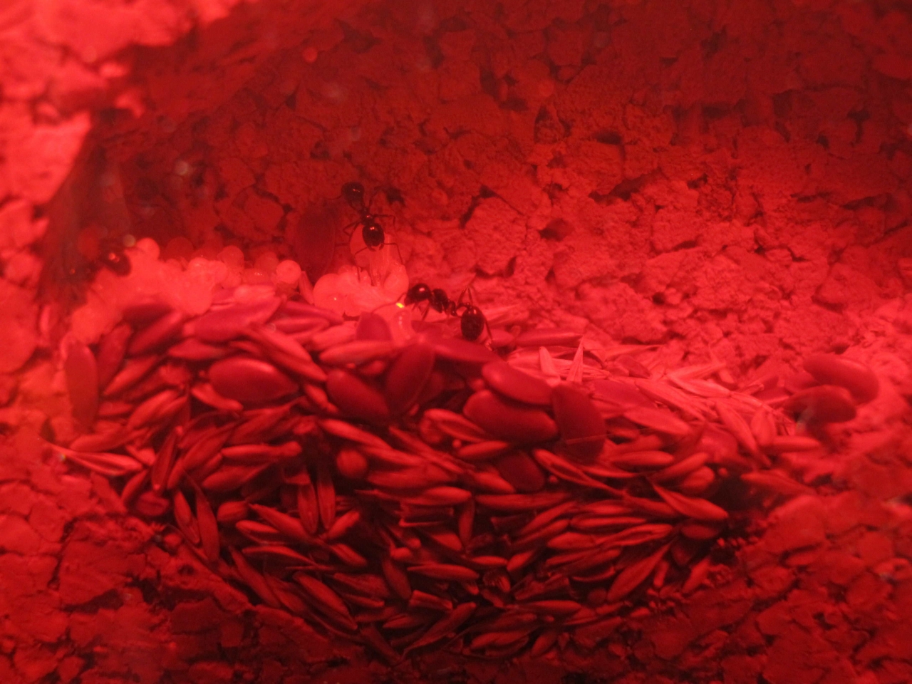Meine Kolonie von Messor barbarus hat zur zeit in etwa 35 Arbeiterinnen und einige Eier.