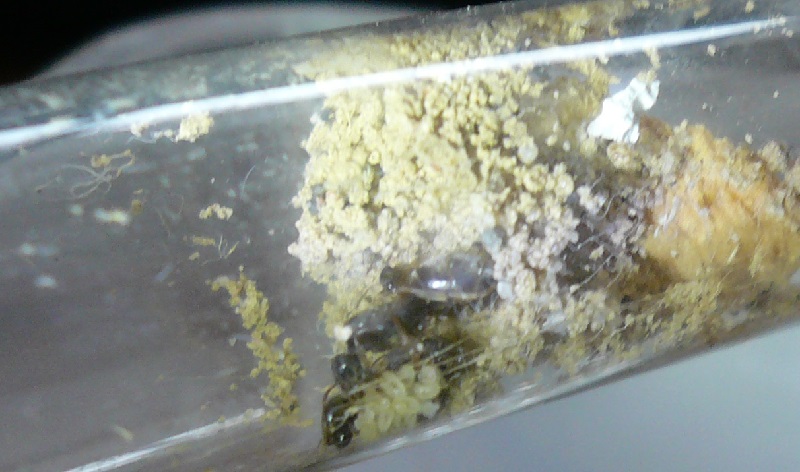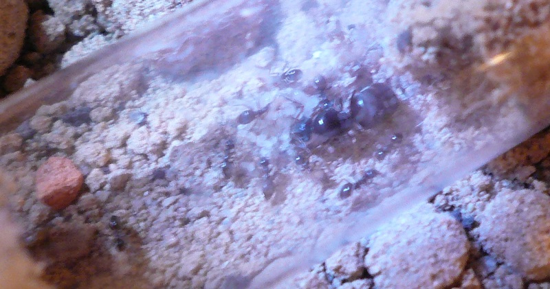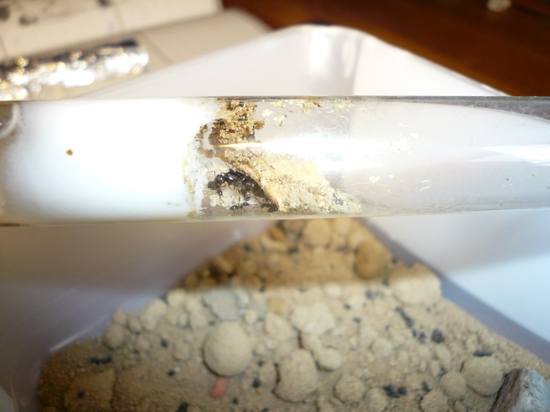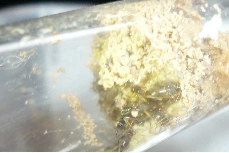 Ich erlaube mir mal, hier auch Bilder meiner Messor-Gyne zu posten, die ich im Sommer in Kroatien gefunden habe. Auch sie ist gerade in Winterruhe was unter anderem die schlechte Qualität der Fotos erklärt: