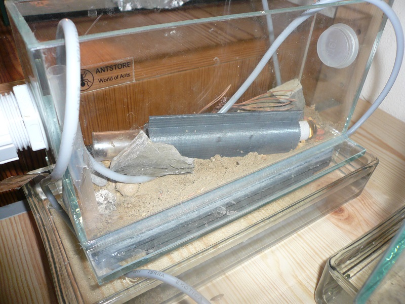 Ja, meine L. nigers sind umgezogen, nachdem ich eine außerhalb der (anti-ausbruchssicheren) Eisboxen sah. Sie leben jetzt in kleinen Glasarenen mit Wassergraben, die eine Kolo hat außerdem ein Heizkabel unters RG bekommen. Angesichts dieser Umstände verstehe ich nicht, warum diese Kolo ständig versucht auszubrechen (was ihnen das Heizkabel, obwohl es durch den Wassergraben läuft, einfacher macht). Sie haben Futter, ein schönes Nest, ein Heizkabel unterm Hintern - was fehlt ihnen? Platz?