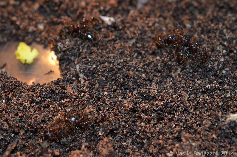 It consists of about 10-12 queens (after the usual post-shipping die-off). A few queens died, loads of workers died but there's still several thousand roaming the tank. I will have photos soon of the colony, they've settled in already (it's been about a week now) and they're eating everything I give to them. The queens, majors and workers at first moved into the plaster nest but then moved out of it and underground. I will be sure to make a change to this later, but for now I just want them to settle. The tank is quite damp as well, so with carefully managing water levels I'm able to keep humidity up high.