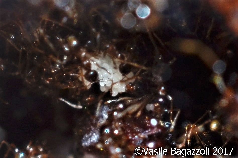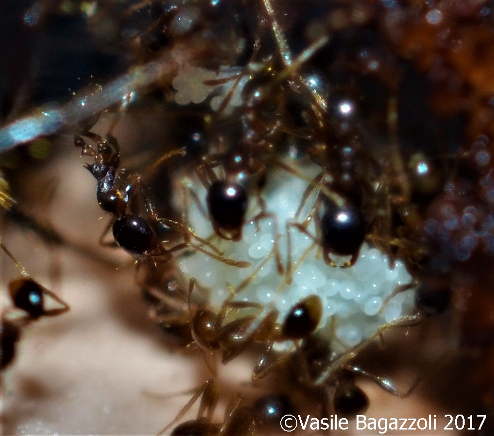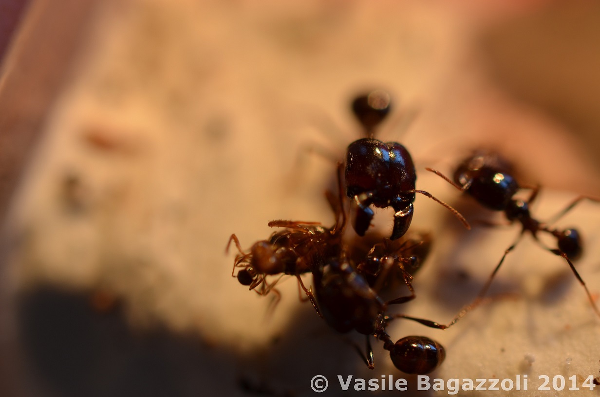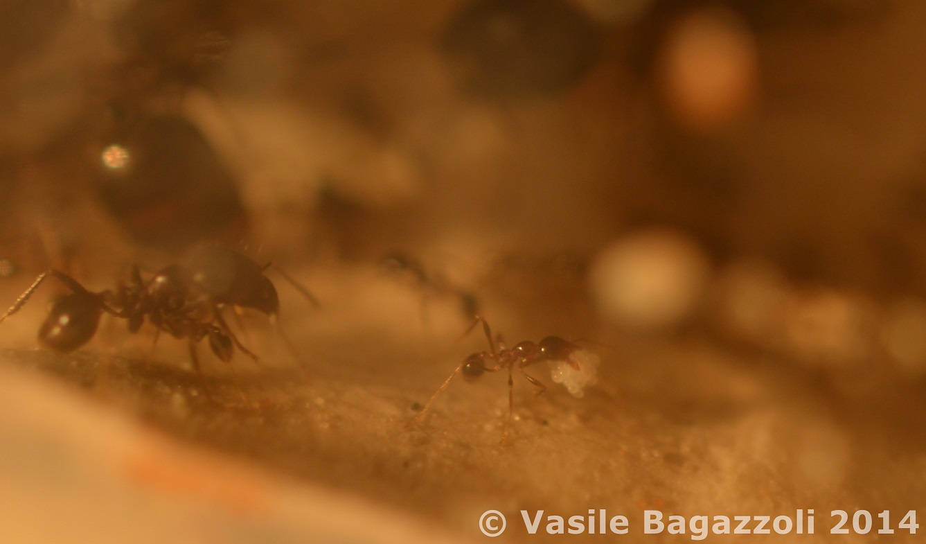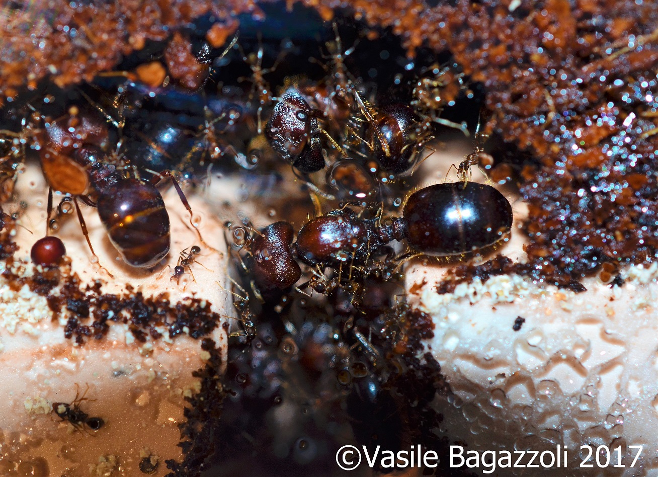The Lasius queen was dead before she was offered to the ants. All insects given to this colony are immersed in boiling water so as to kill any potentially harmful bacteria and mites.