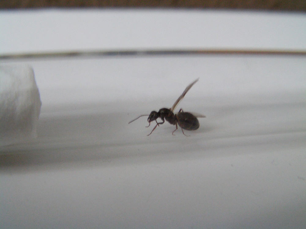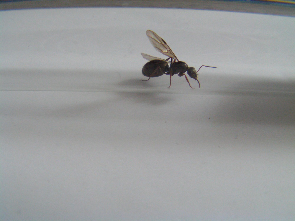 Als die ersten Arbeiterinnen vorhanden waren, haben sie das größte Stück ihrer Flügel abgeschnitten und es sind nur noch kleine Stücke vorhanden.