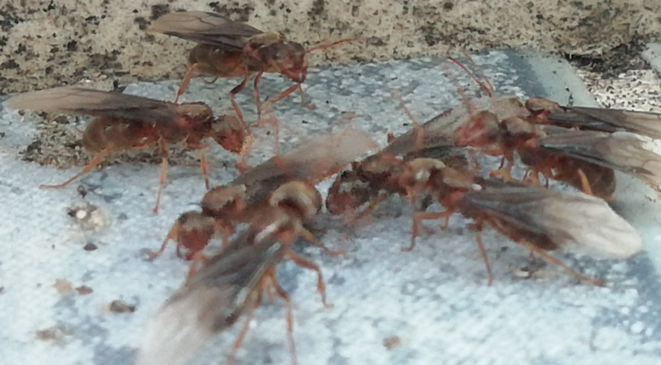 Siehst Du des öfteren auch gelbe Ameisen herumlaufen, das wären die Arbeiterinnen der Kolonie. Du könntest evtl. mal in der Nähe einen Flaschenverschluss mit Zuckerwasser (Etwa 3:1 Wasser:Zucker) hinstellen und schauen, ob sich nach einigen Minuten dort Ameisen einfinden.