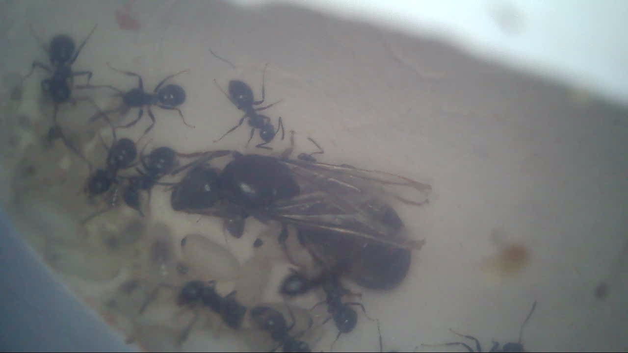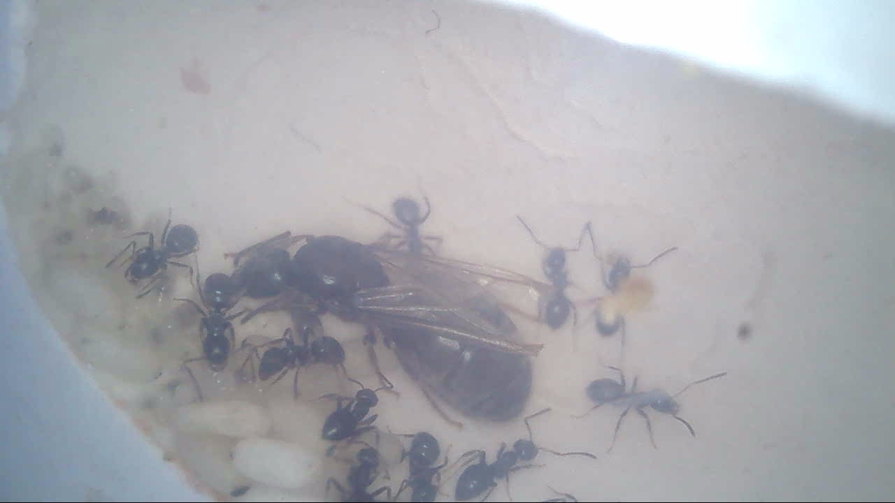 Hallo, ich hab vor ca zwei Monaten eine Ameisenkönigin gefangen. Sie hat mittlerweile auch schon einige Arbeiterinnen und ziemlich viel Brut. Ich würde jetzt allerdings gerne wissen, um welche Art es sich handelt. Ich würde sie ja grundsätzlich für Lasius Niger halten. Aber ich habe zu unterschiedlichen Zeiten so oft Lasius niger getroffen und weigere mich mittlerweile zu glauben, dass jede schwarze Königin, die ich finde L niger ist.