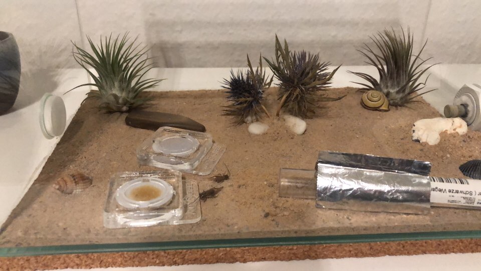 Die Arena war bereits vorbereitet. Habe heute nur noch Ausbruchschutz angebracht und das RG in die Arena gelegt. Natürlich habe ich das RG auch abgedunkelt. Hab den kleinen noch Wasser, Honig und Proteine gegeben.