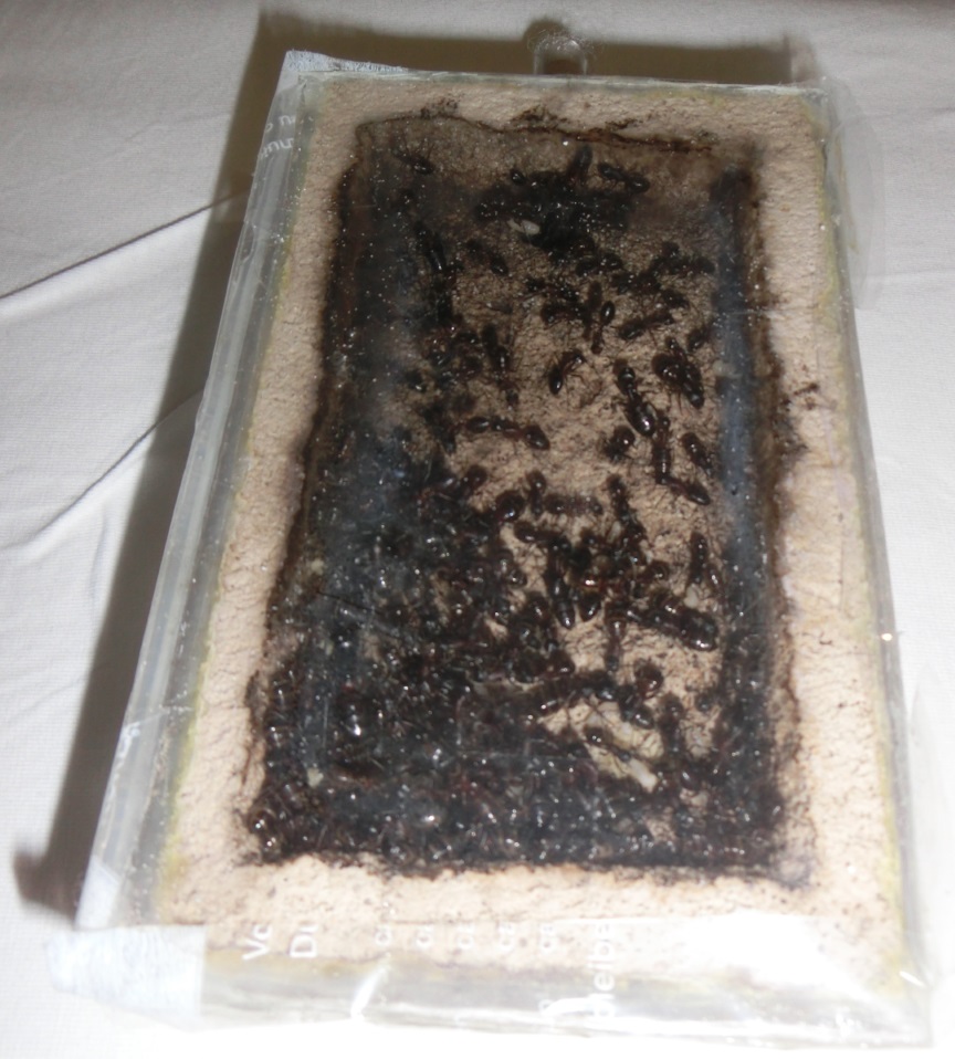 Larven verpuppten sich nicht oder nur spärlich und wurden dann gefressen.