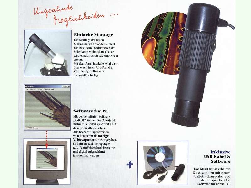 Diese Kamera ist ein bessere Webcam mit einer aufgesetzten Lupe.