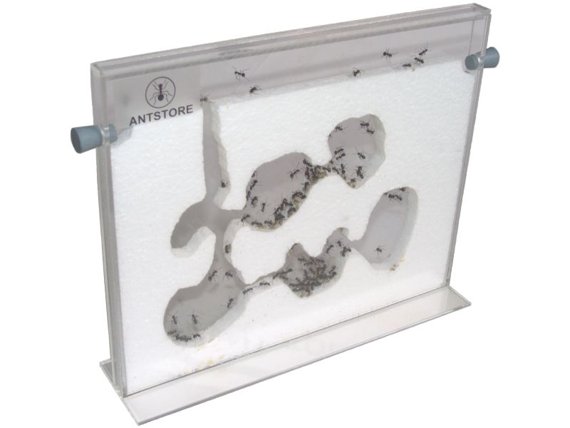 Styropor bei (Dendro) Lasius fulginosus = Das Styropor wird sofort bearbeitet (Kammern und Gänge angelegt). Wichtig für die artgerechte Unterbringung ist es, den Tieren einen extra Auslaufbereich mit Holzmaterial zu bieten.