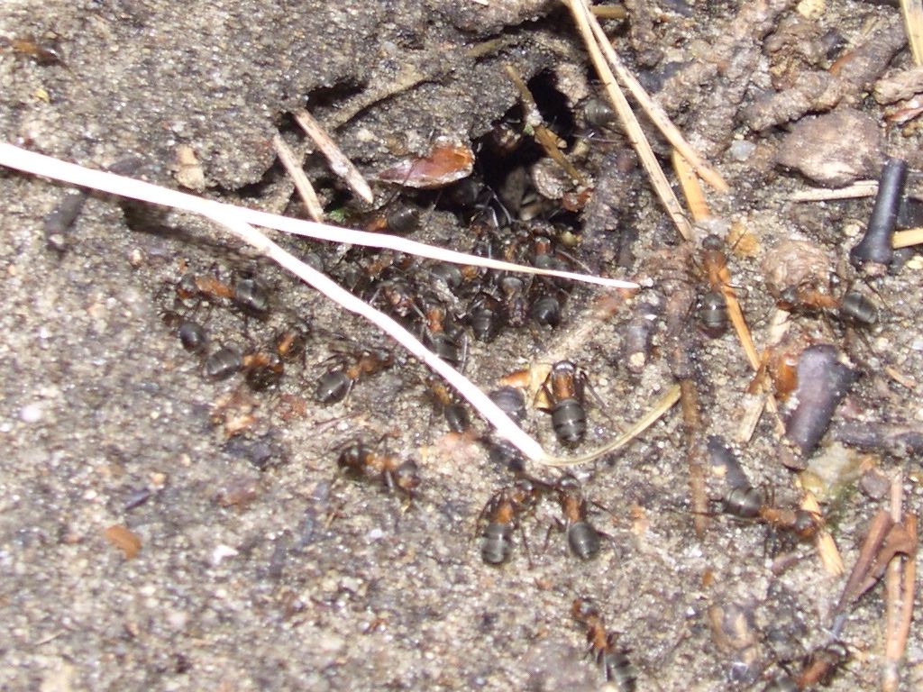 Die in den Bildern von Martin S. gezeigten Gestelle sind allerdings zu nahe am Nest. Die Eckpfosten müssten hier gut einen Meter weiter nach außen gesetzt sein, denn sehr viele Ameisen und Brut finden sich auch im Boden um den Nesthügel herum, im so genannten „Erdauswurf“. Das ist ein oft zu sehender Ring von Sand oder Erde, die von den Waldameisen beim Bau von Gängen und Kammern im Boden an die Oberfläche gebracht werden.
