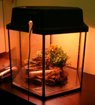 Die rote Folie von der Lampe hab ich auch wieder abgenommen, da es im Nest eh dunkel ist, und das helle Licht im Becken nichts auszumachen scheint.