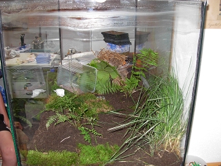 Für den Nestbau habe ich (sollte auf dem Foto ebenfalls recht gut erkennbar sein), neben einem Wurzelstock ein kleinen Haufen von Blätter hingetan (Trauben-,Weiden- und Birkenblätter).