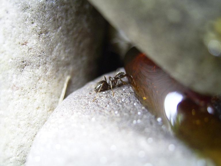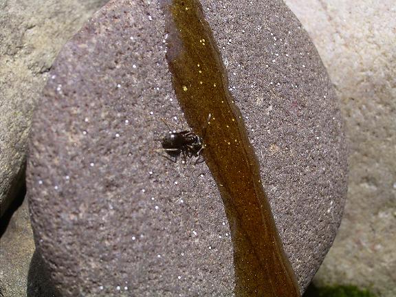 Zum besseren Fotographieren hab ich ein wenig Stroop (Karamelsirup aus Holland) auf eine Stein getropft und siehe da: sofort hat jemand vom Außendienst das süße Mahl entdeckt und fängt an zu schlürfen!