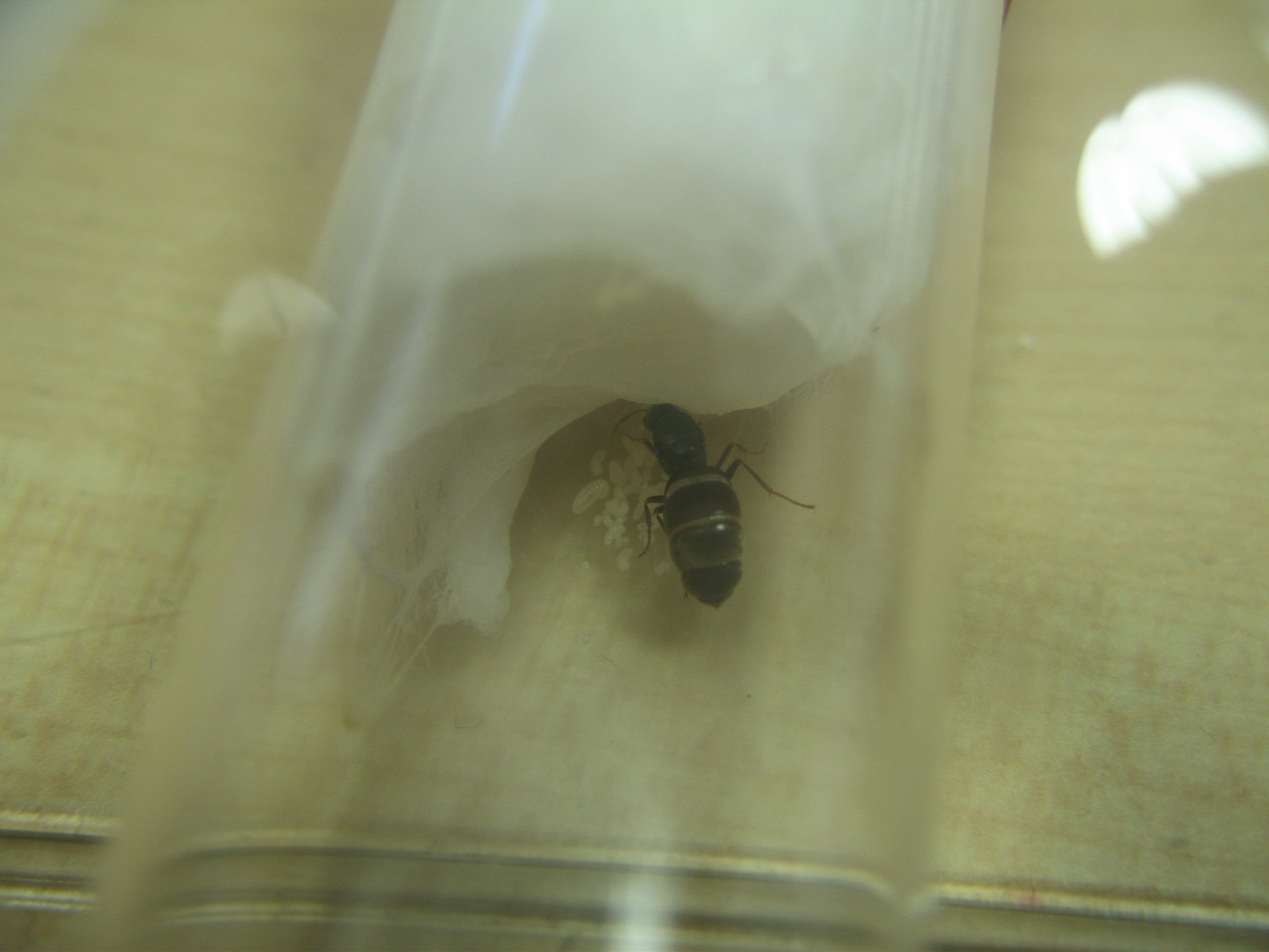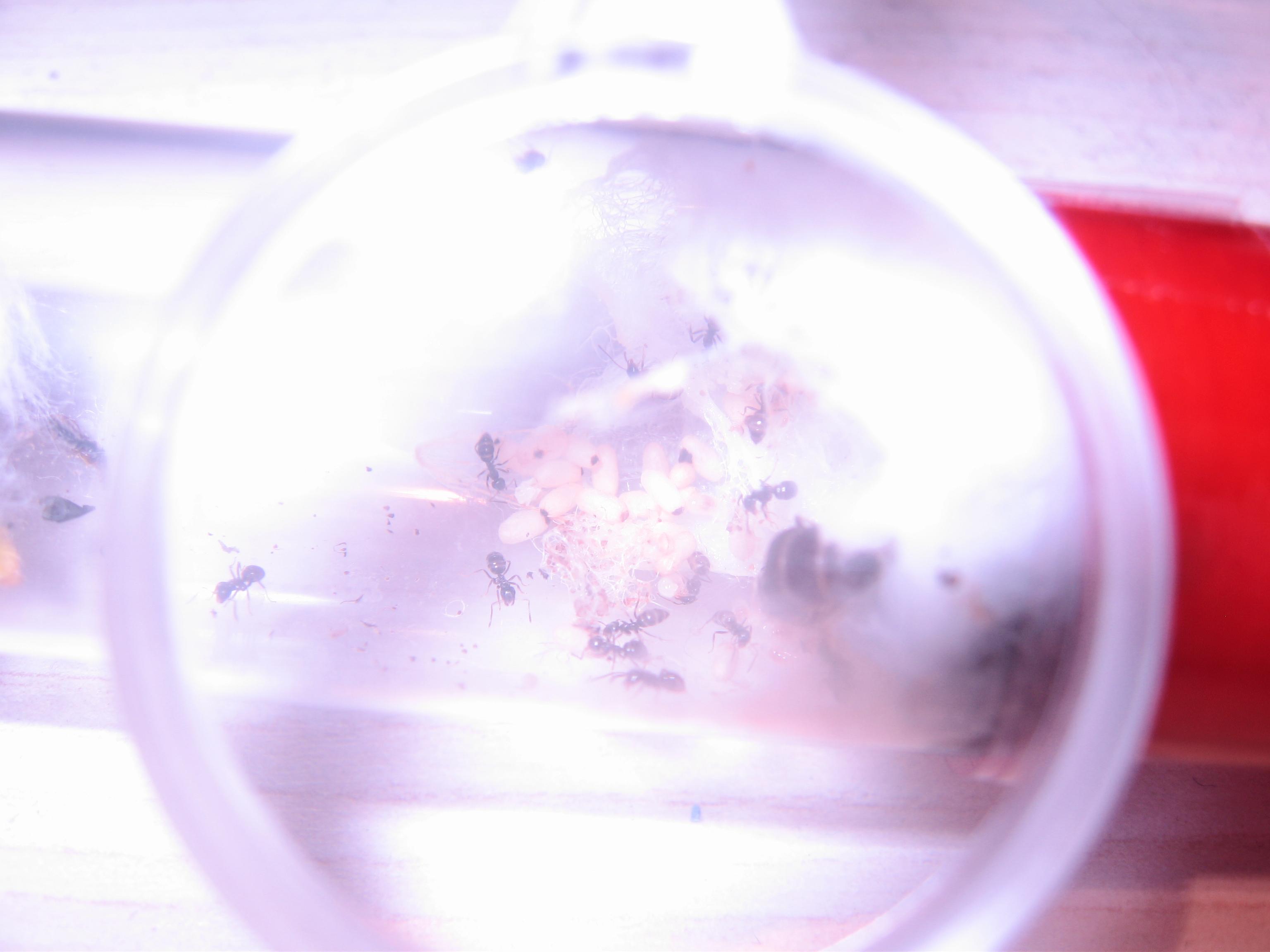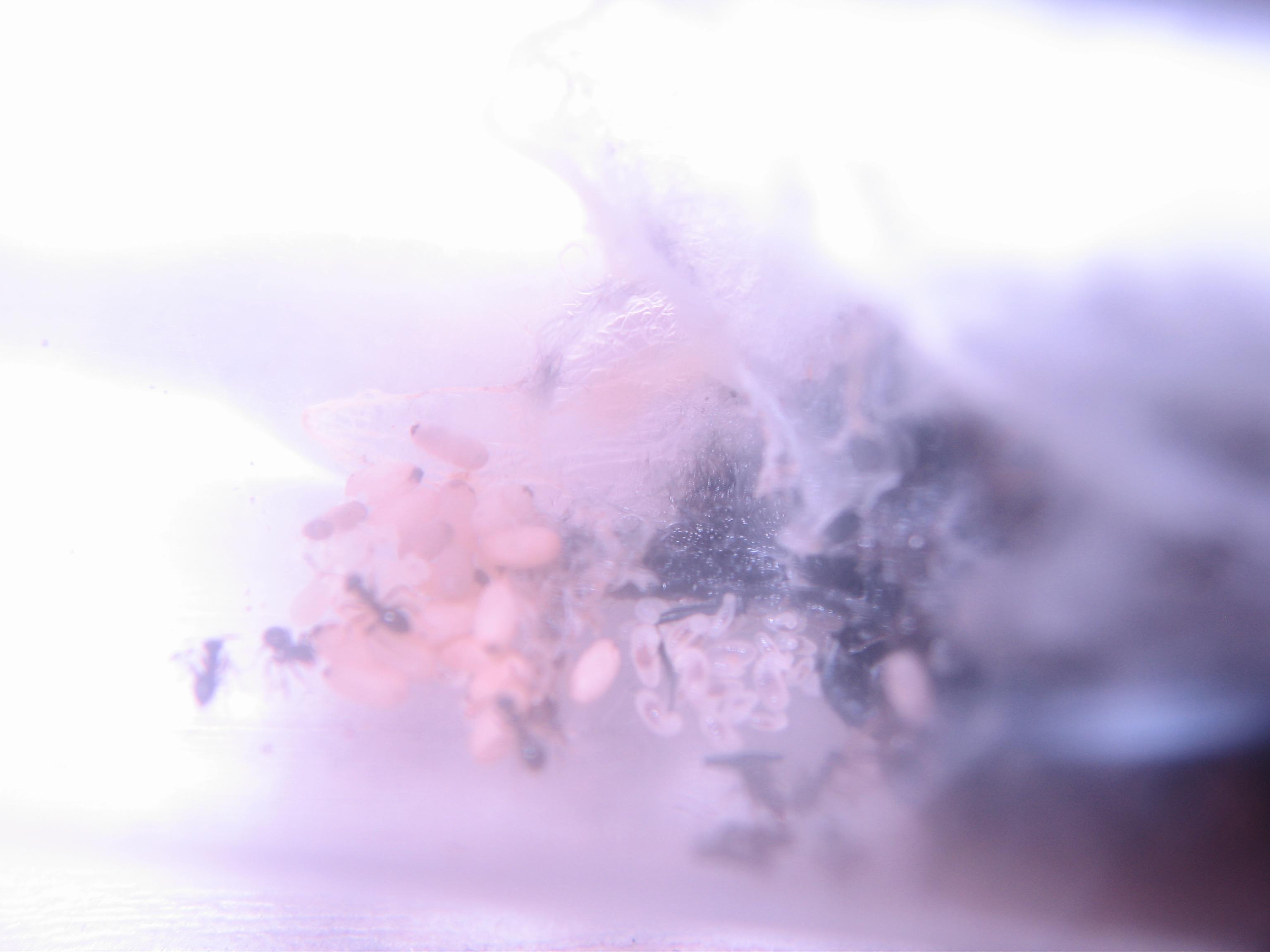 Ihr geht es anscheinend richtig gut und hat schon 5 Eier gelegt. Und jetzt wo ich weiß wie winzig die Eier sind, glaube ich, ich hab welche in ihrer ersten Behausung vergessen und sie mit samt Erde wieder in den Blumenkasten geleert. naja ... Anfängerfehler eben ... in den Makroaufnahmen sieht alles immer so riesig aus ^^