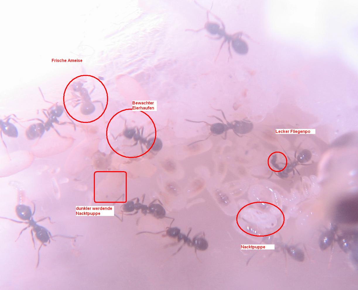 Hab nen Tag später übrigens bemerkt, dass an der Stelle an der ich die Erde zurück hab nen haufen anderer Ameisen waren und gebuddelt haben. mindestens 30 Stück auf der kleinen Stelle. ich dachte gleich, dass die Königin Pheromone hinterlassen hat und die die Eier suchen ... vielleicht is sie ja auch direkt aus der Kolonie und sie riechen das. Auf fremde Pheromone sollten sie ja eigentlich nicht reagieren.
