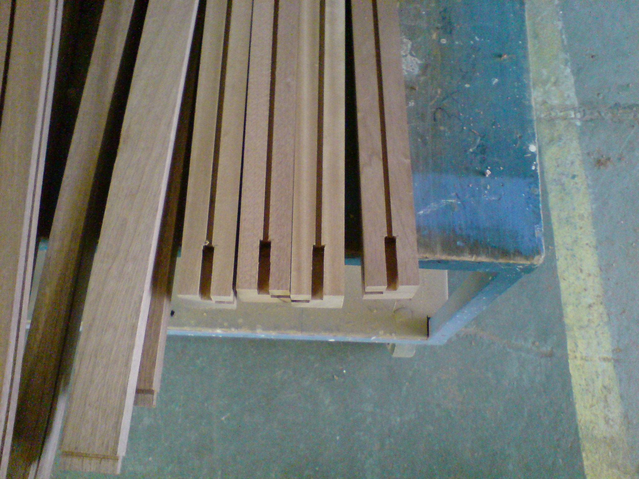So vergingen dann 3 Stunden bis ich den dazu kam für die Zapfen die Schlitze an den Füßen zu Fräsen. Hatte einen Stumpfen Fräser erwischt und man das hat gestunken und gequalmt. Na ja gut als ich ihn dann gewechselt hatte ging es fix voran. Siehe Bild 5