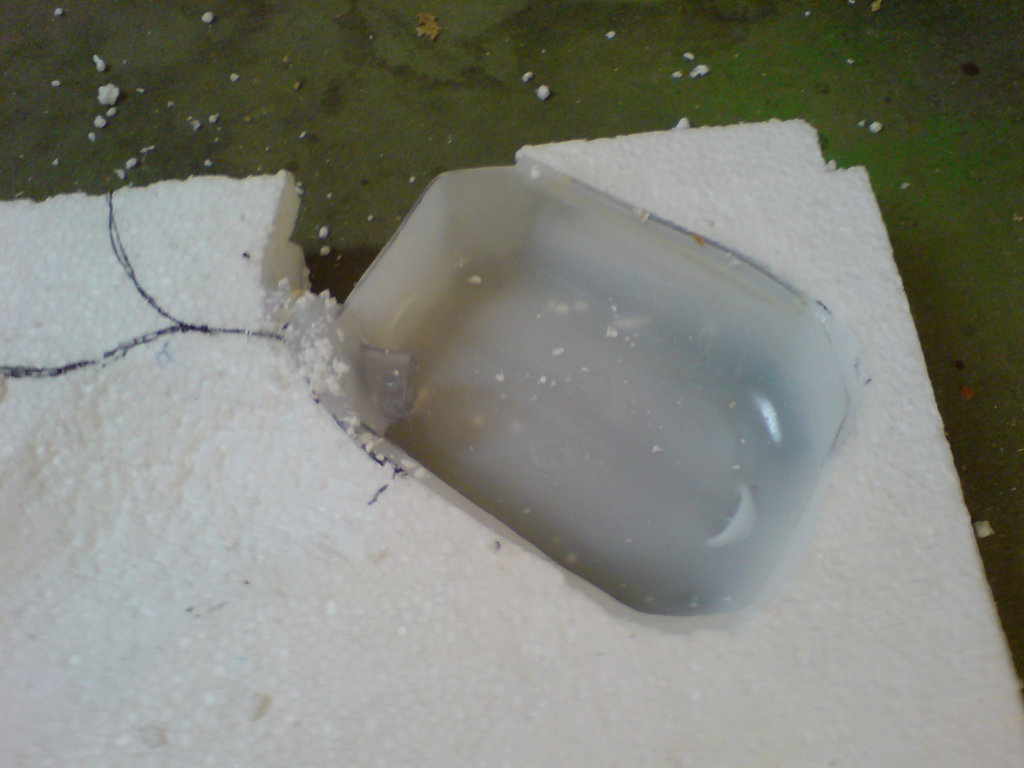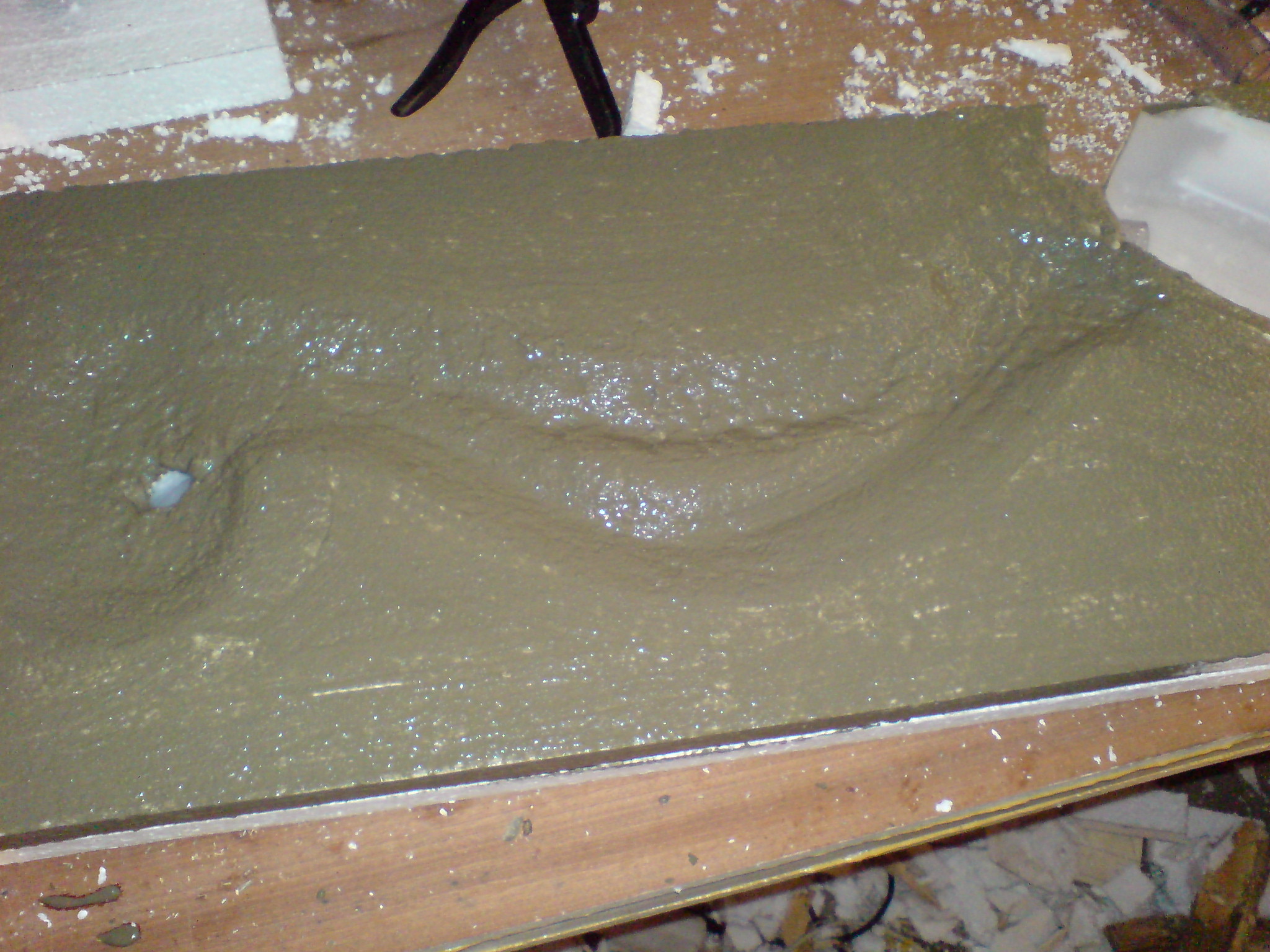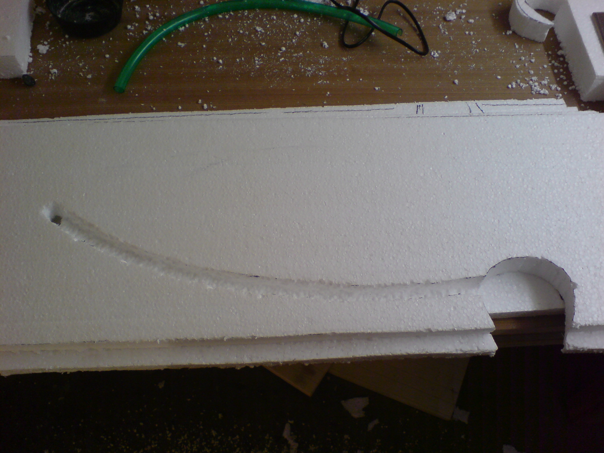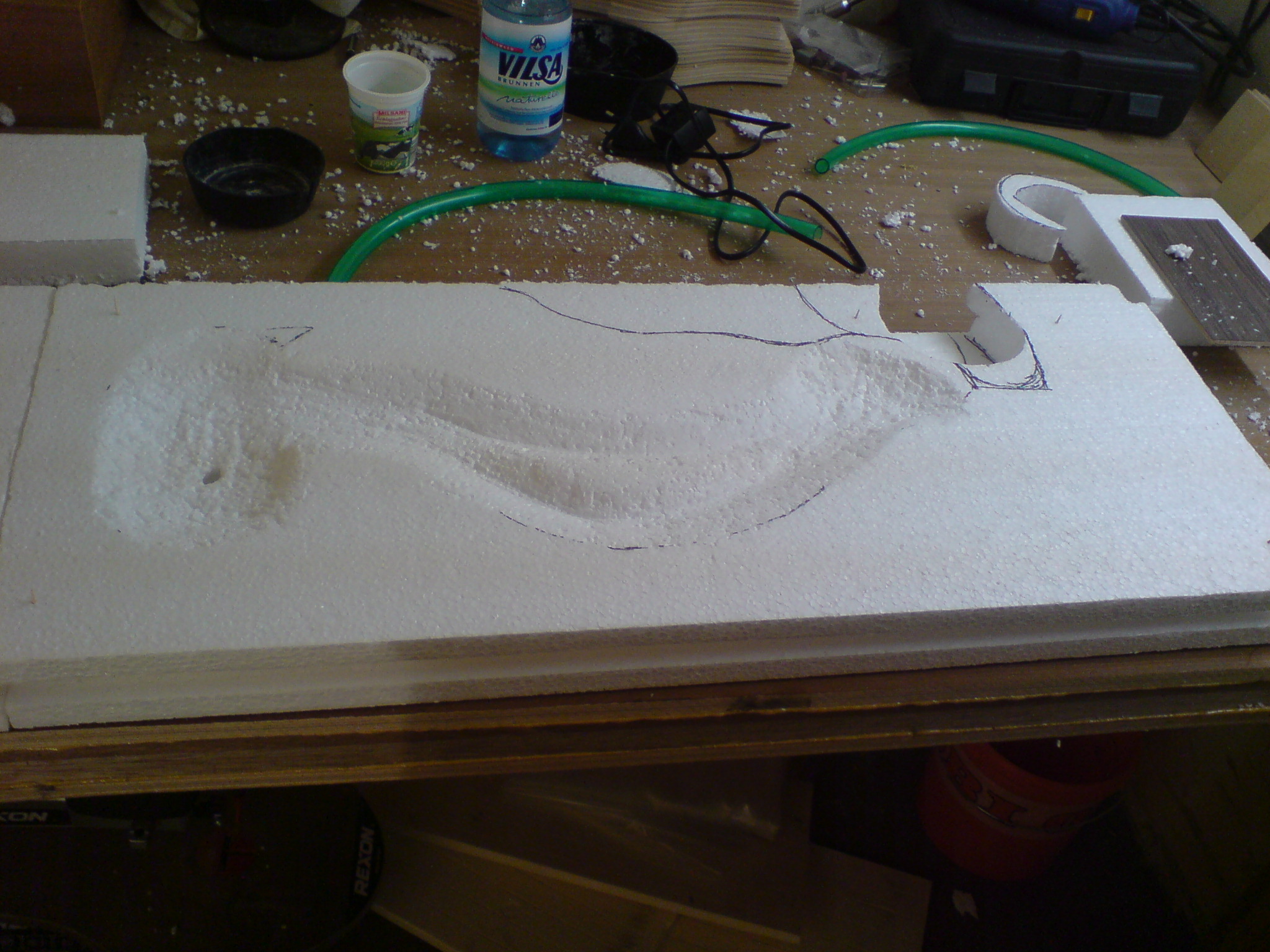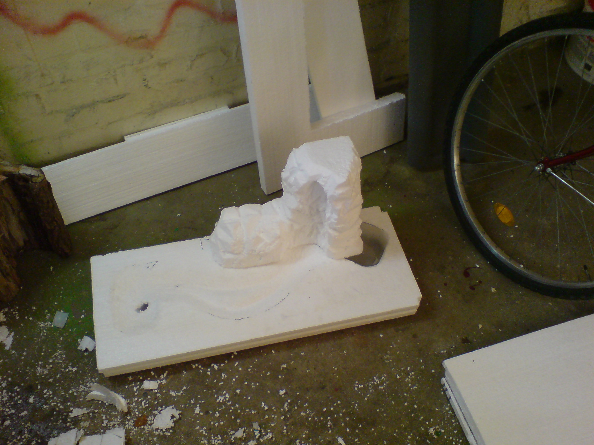 Nun setzte ich mich an den dicken Styropor klotz und Arbeitete ein wenig die Konturen von dem Wasserfall aus.