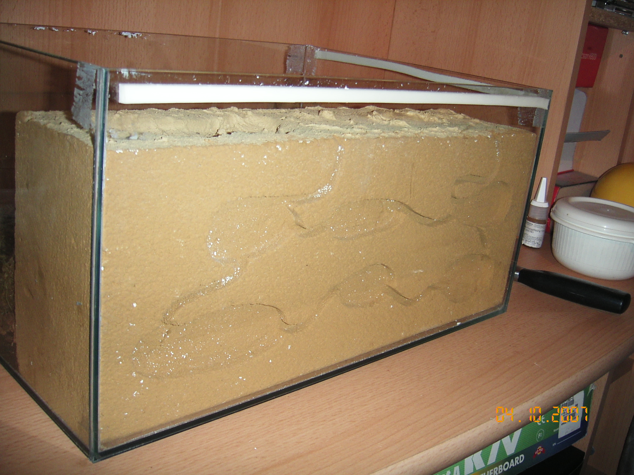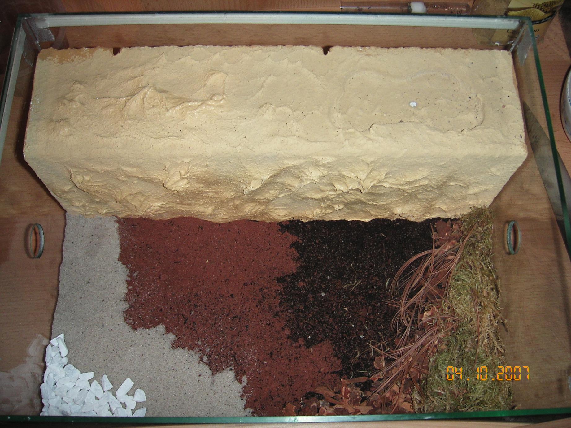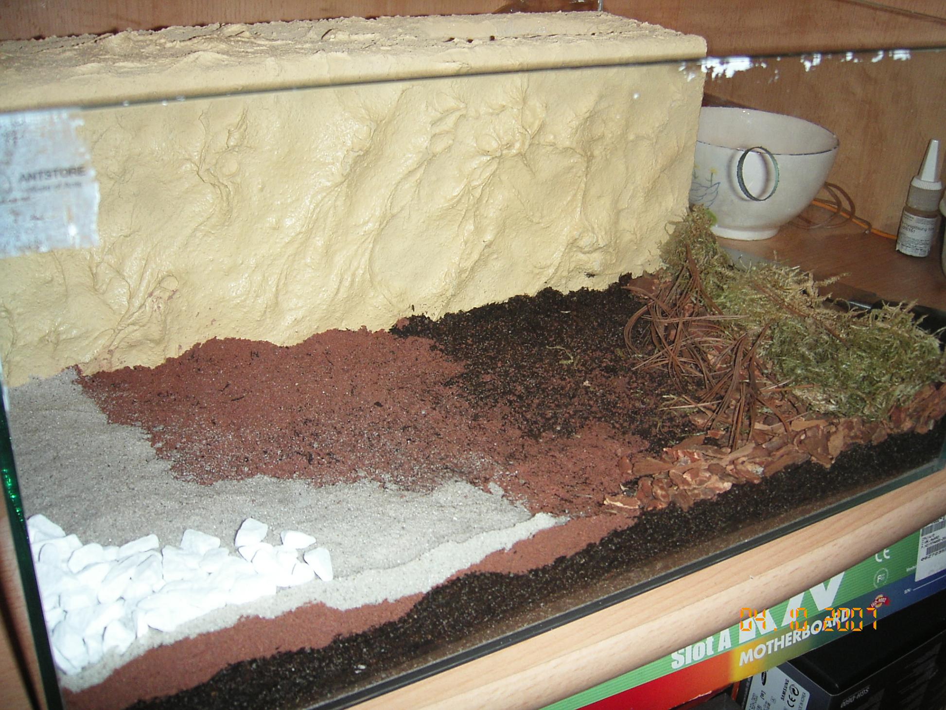 Allerdings habe ich das Becken schon einmal eingerichtet und mir die Angaben von Antstore zu herzen genommen und versucht ein bisschen was von allem zu bieten 8wie man ja auf den Bildern erkennen kann). Ich hoffe meine kleinen werden es mögen und sich wohl fühlen....