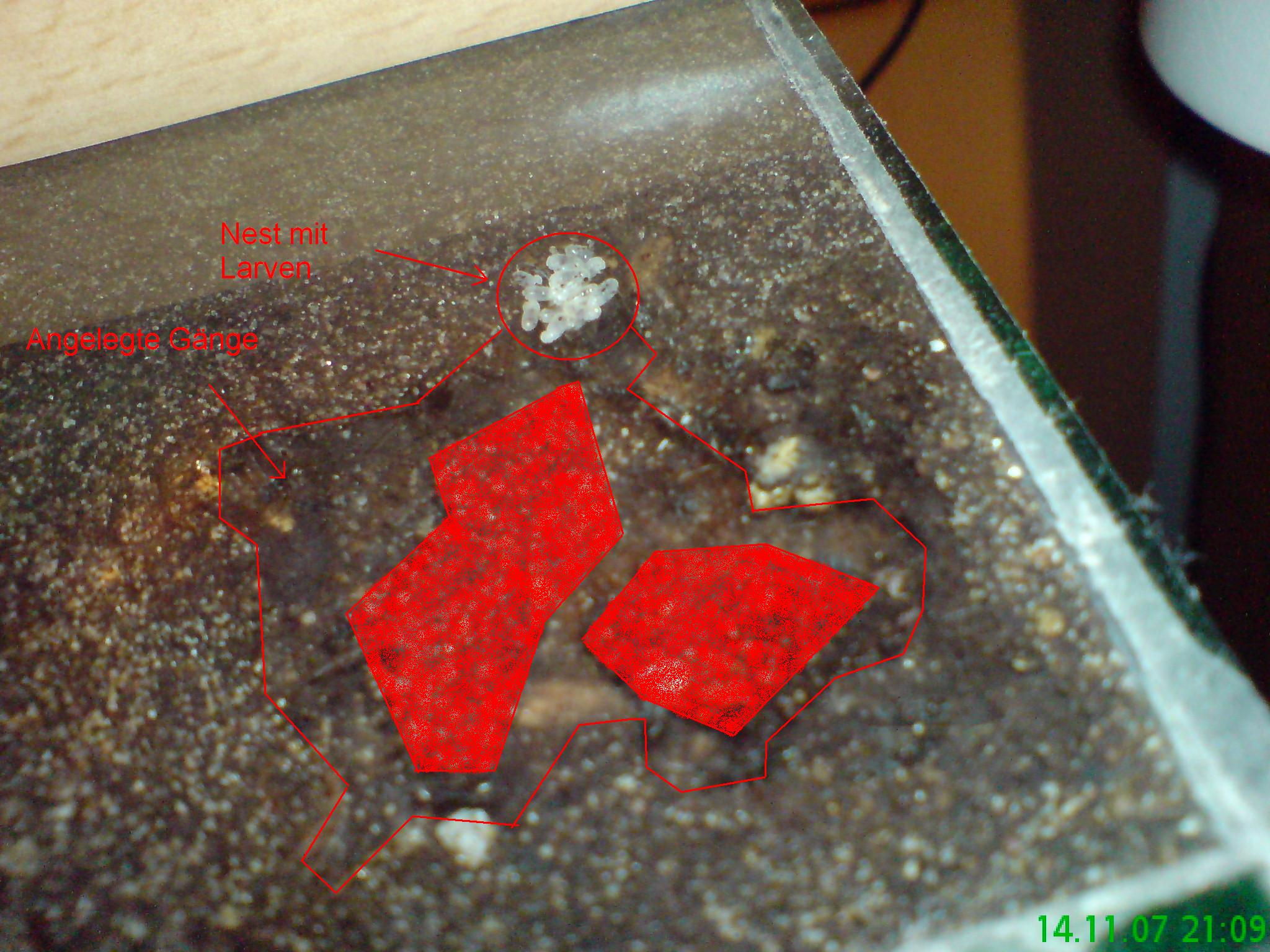 Nestbau: Erdnester unter Steinen, Rindenstücken oder Wurzeln