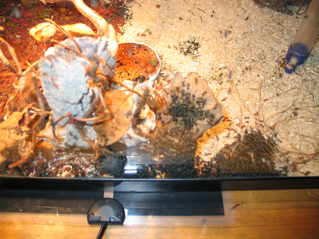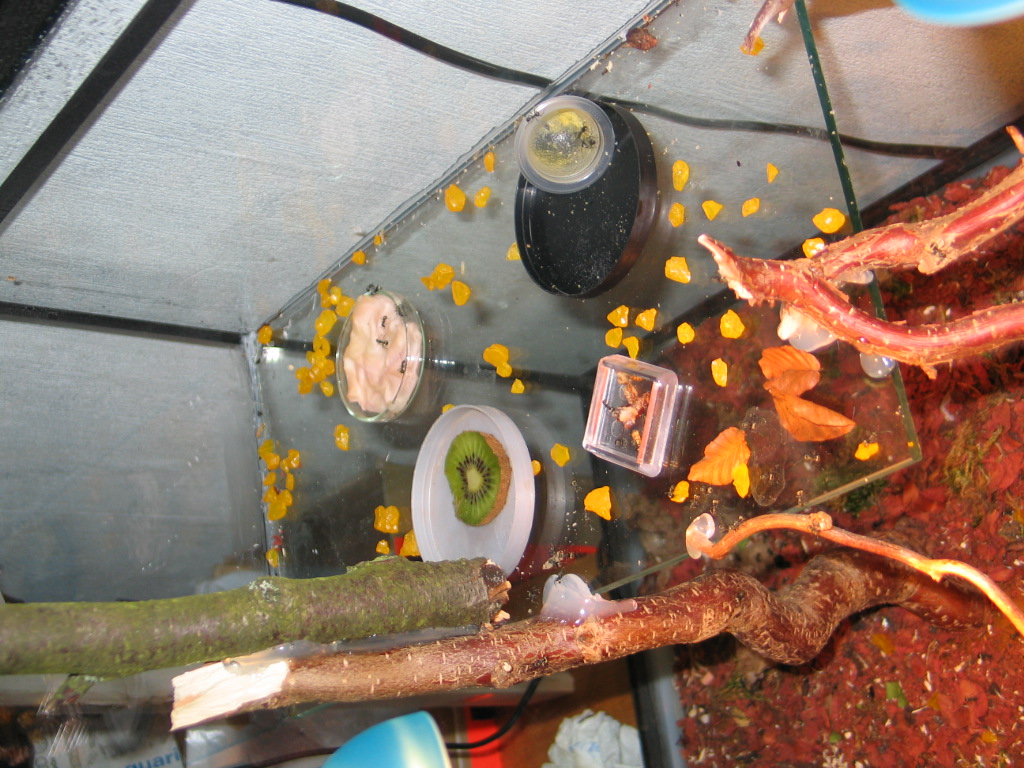 Fressen: alles was sich findet und was sie zerlegen können, mehlwürmer hauptsächlich momentan, und demnächst bekomm ich endlich pinkys und drosophila(fliegen)