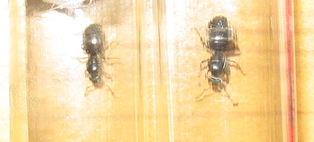 Zuerst dachte ich ja es seien beide Lasius niger*, wegen diesem "ominösen" hellen Streifen auf dem Gaster, aber die Größe ist schon sehr unterschiedlich. Aber seht selbst: