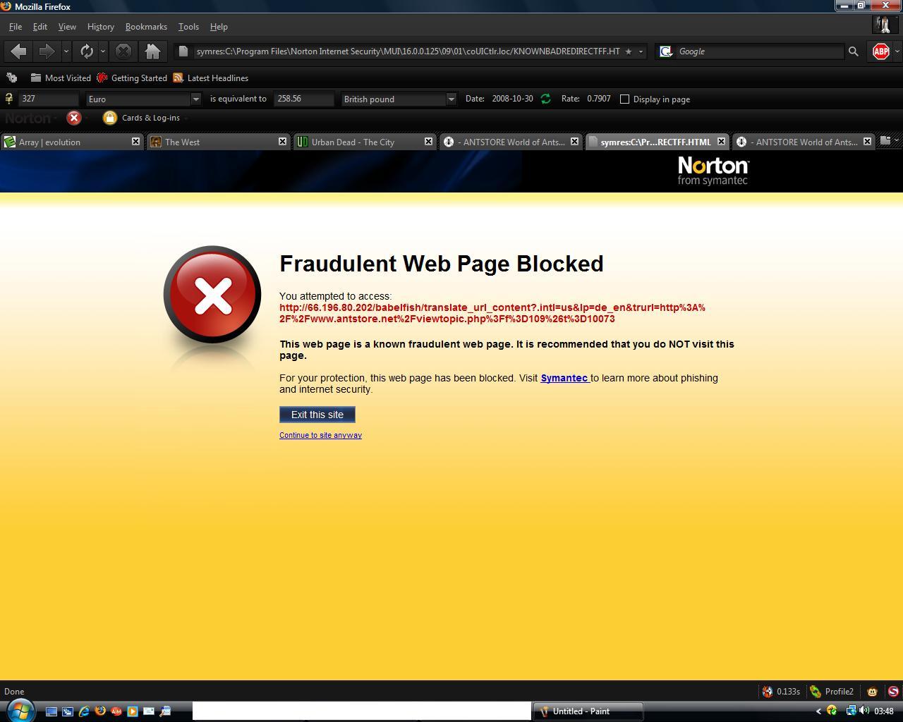 The Web page that you are on is a known fraudulent page. Symantec has analyzed the Web page and found the page to be either fraudulent or a known bad site. To protect yourself from criminal activity, it is recommended that you do not visit this page.