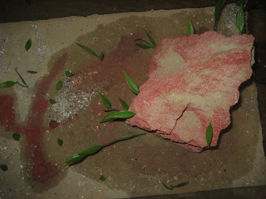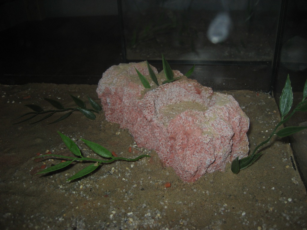 als es dann schließlich fertig war, stelle ich es in das Terrarium und setzte noch eine unechte Pflanzen drauf bzw Blätter..