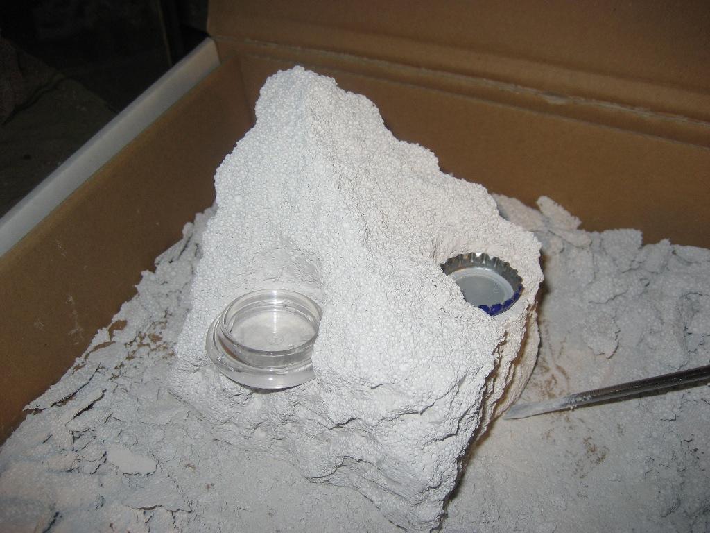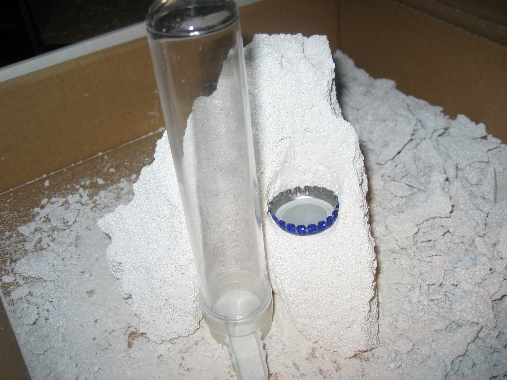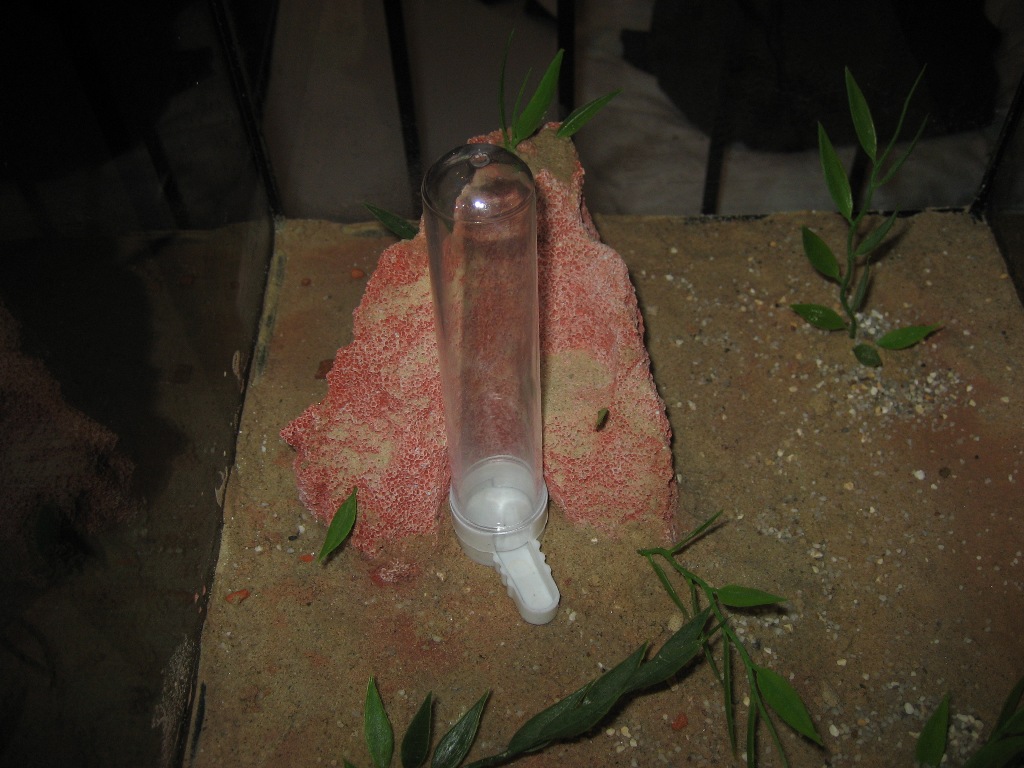 ich denke so eine Konstruktion kann man auch gut für Messor benutzen.. auch ohne Schale drin einfach die Körner rein.. vielleicht noch ein Holzstück davor das sie leichte hochkommen und das wars.