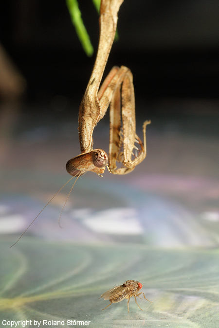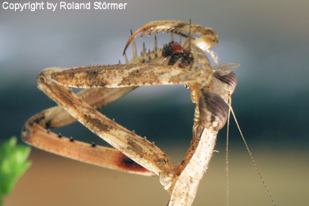 Unten Bilder eines Jungtieres, einer sogen. Larve (Baby-Gottesanbeterin) von etwa 3,5 bis 4cm.