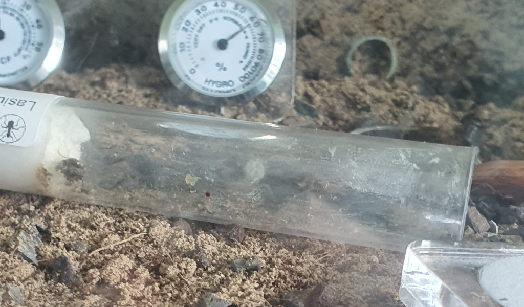 Zum einen hat sich anscheinend Schimmel (siehe Bild 1,3 relativ Mittig, etwas weiter links ist auch noch irgendwas Gelbes) im Reagenzglas gebildet, zumindest soweit ich das erkennen kann. Ich wollte die Ameisen jetzt nicht stören, indem ich das Reagenzglas herausnehme. Das Reagenzglas kam bei mir auch schon ein wenig schmierig an und mit diesem gelben Ding, aber ich habe mir dabei vorerst nichts Böses gedacht... Was soll ich jetzt tun? Soll ich versuchen, den Schimmel irgendwie zu entfernen oder sie in ein neues Reagenzglas umsiedeln?