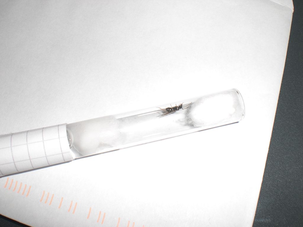 also das reagenz glas is n 100x12 mm , also ein recht kleines reagenz glas , hab sie mal versucht abzumessen soweit das ging und würde sagen das sie so 7-8 mm lang ist ohne flügel nur vom kopf bis gaster . wie sehe ich den ob es ein männchen oder weibchen is ? bzw gibt es mermkmale wie ich ausshliesen kann das sie unbefruchtet ist ? bekomme langsam das gefühl das ich da ne niete gefangen habe ^^ , denn wen ich den gaster meiner lasius niger königi mit dem der gefangenen vergleiche dann ist der meiner lasius niger um welten praller , was man von dem der gefangenen net unbedingt behaupten kann