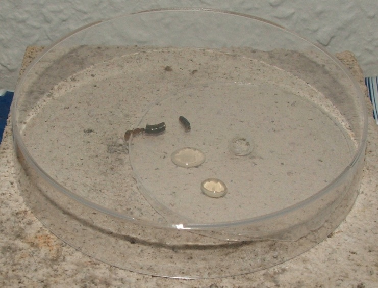 Die Königin war nämlich eben an einem Mehlwurmstück und ließ sich so schön beobachten, war mal kurz verschreckt, als ich die Türe geschlossen habe (sie hat den Windhauch wohl vernehmen können) und ist kurz abgehauen, kam dann aber wieder!