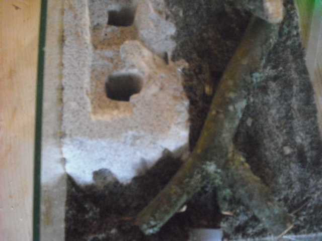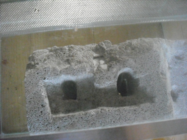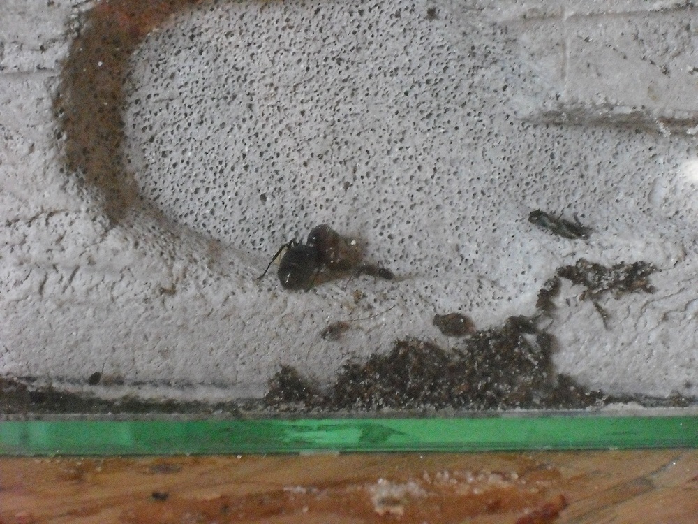 the ants have blocked up the entrance to the y-tong and have dragged in another cricket.