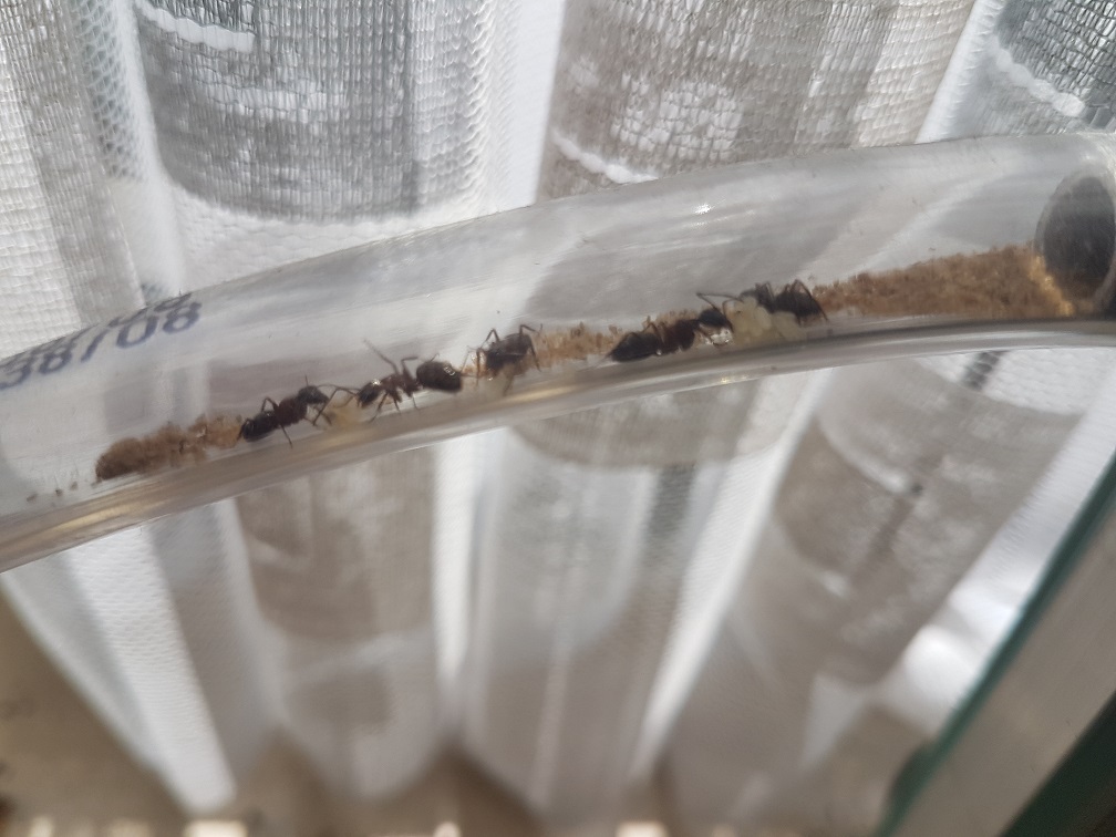1. Ich habe eine Heizmatte an das Formicarium angebracht und schalte diese Tags über auch ein. Seit dem sind die Ameisen um einiges lebhafter und die Eierproduktion ist gestiegen.