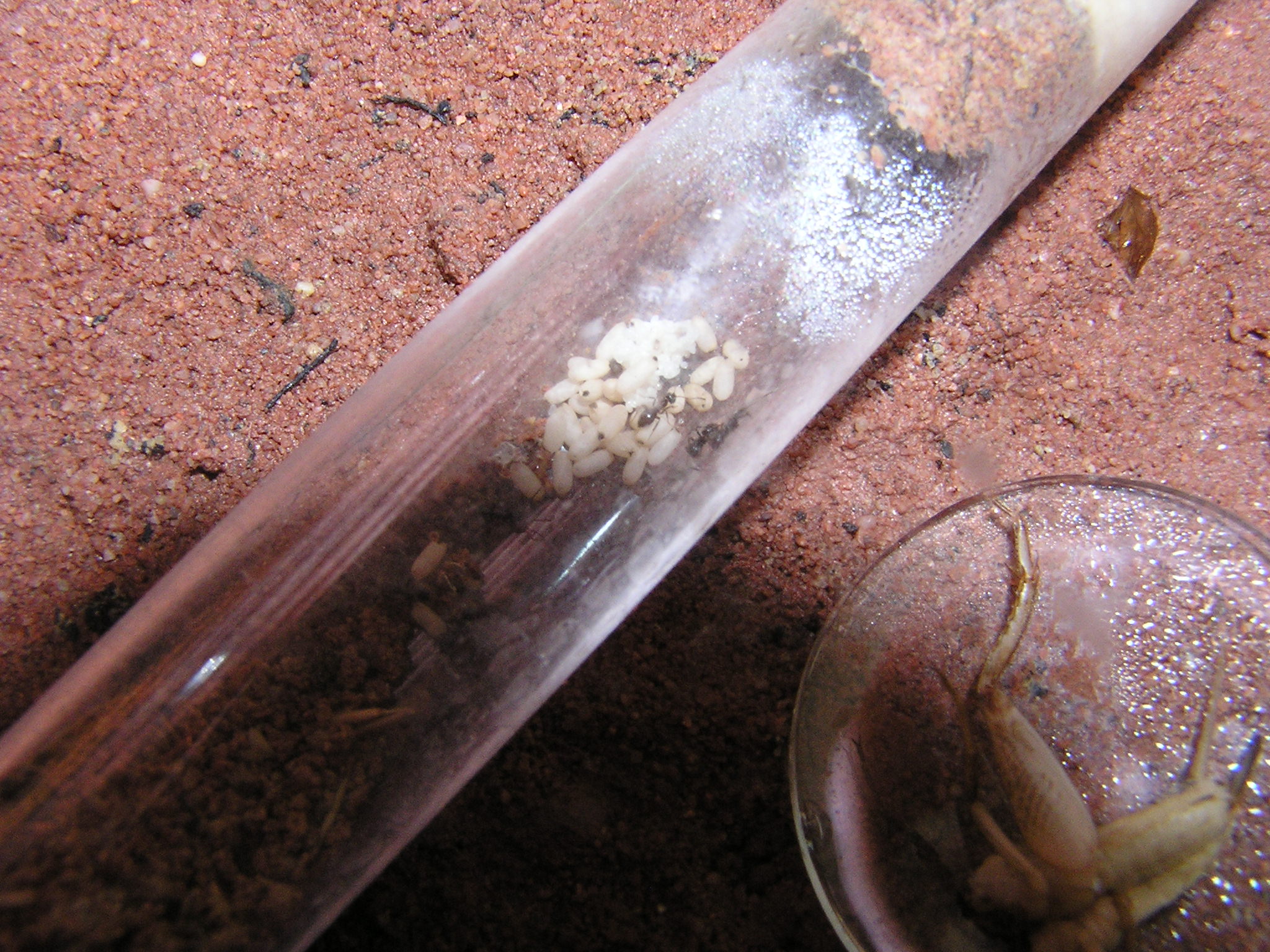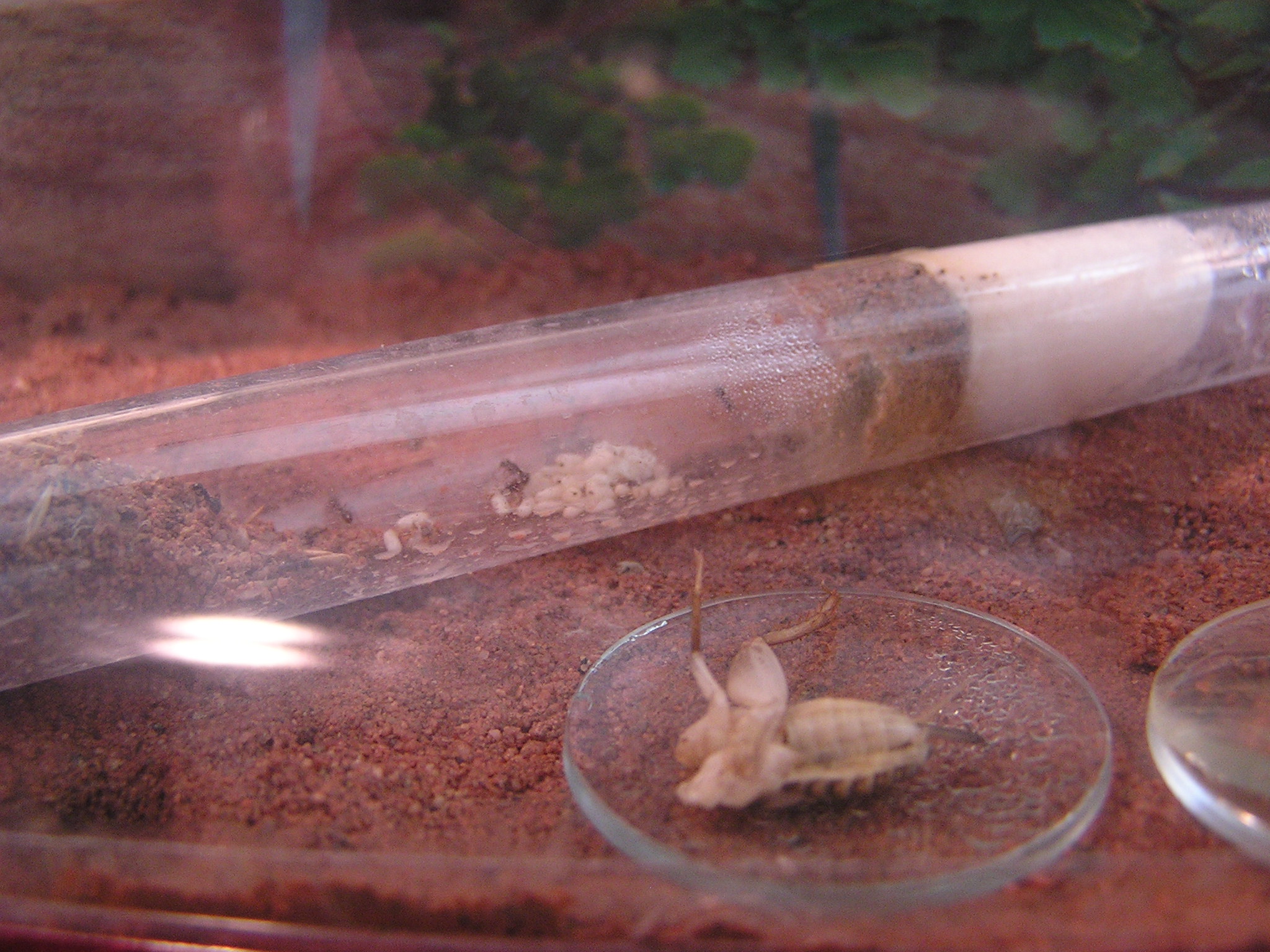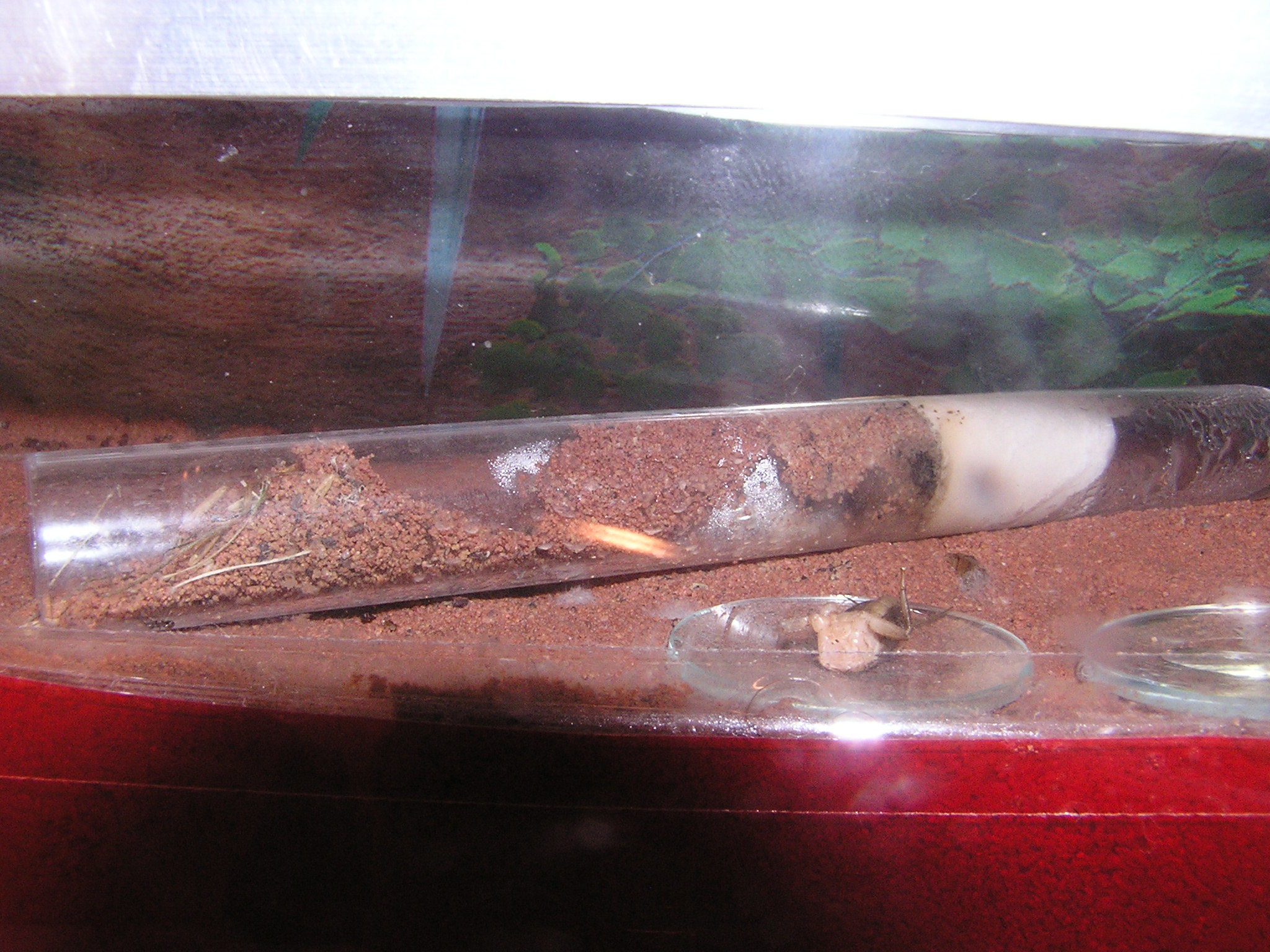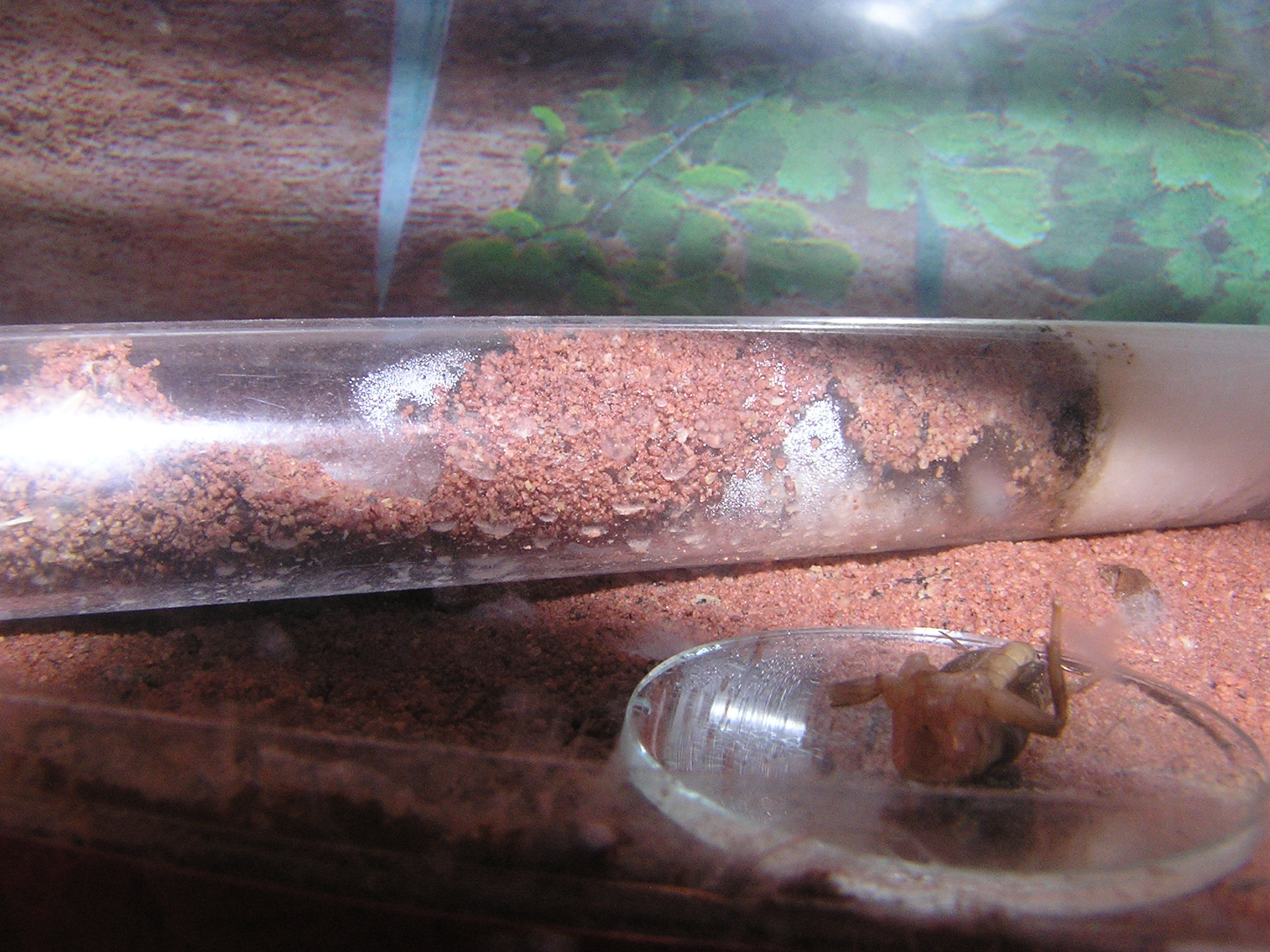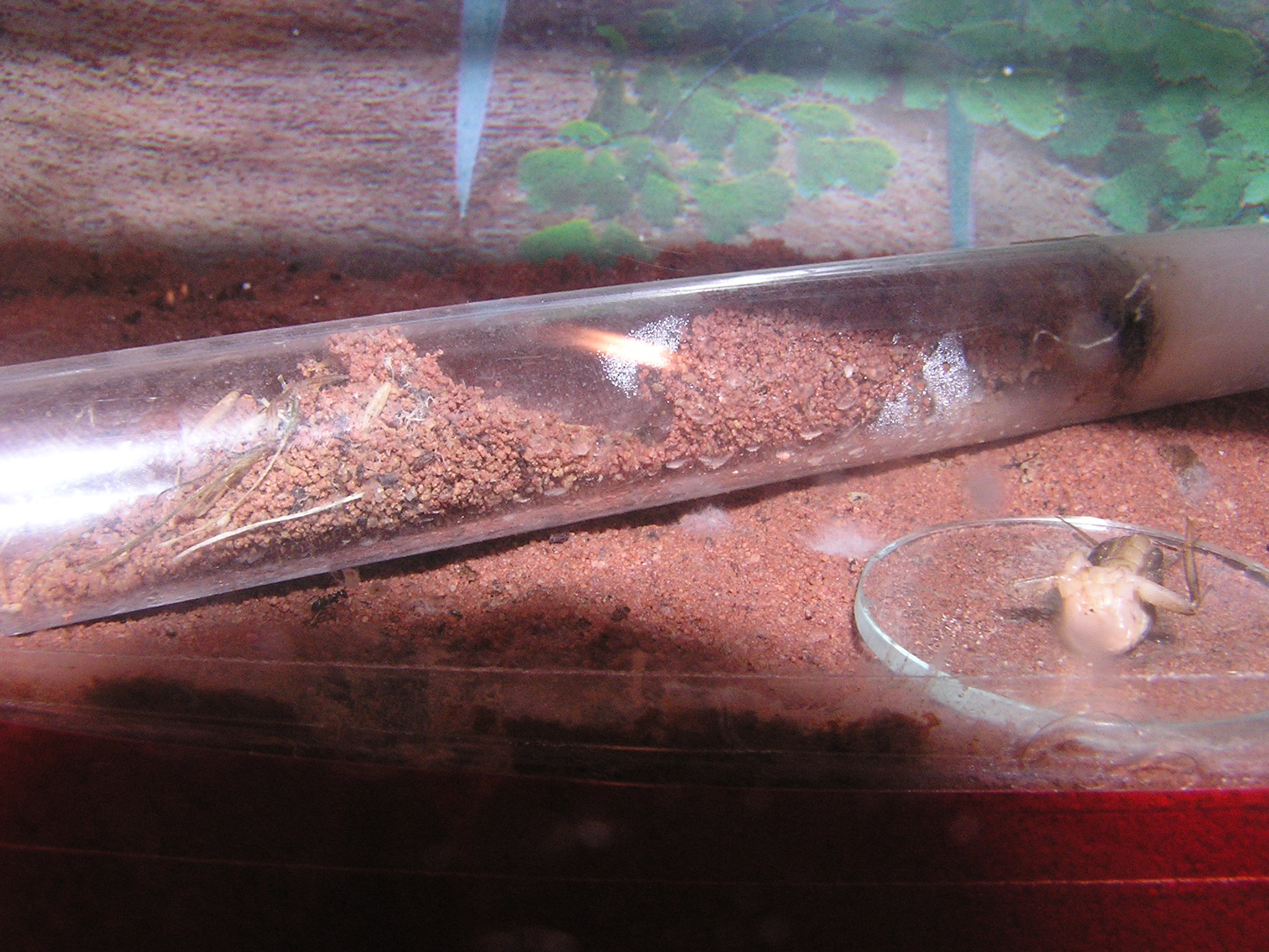 in den Sand eine kleine Kanyle rein getan zur Bewässerung des Nestes, mal sehen wie es funktioniert.