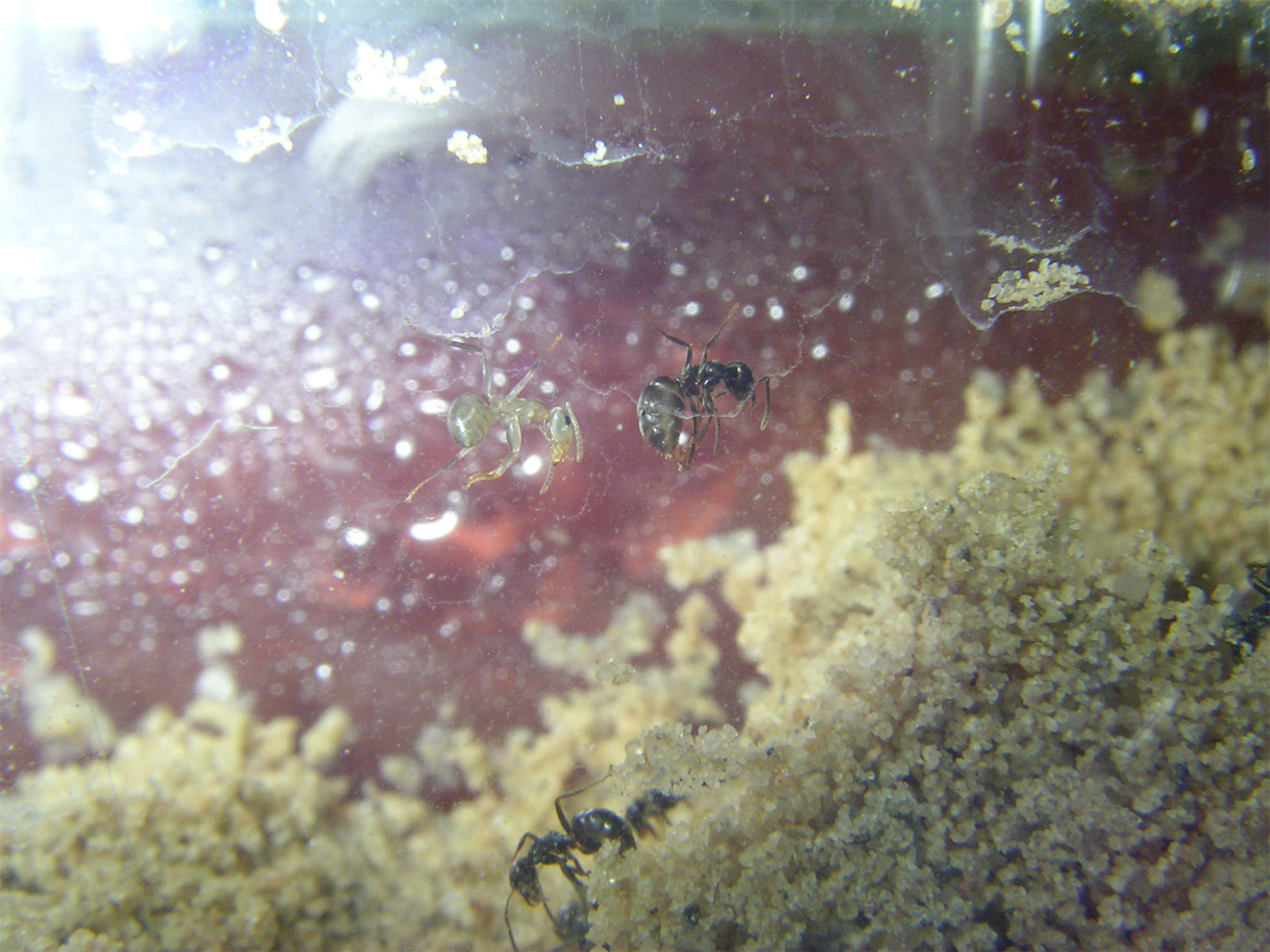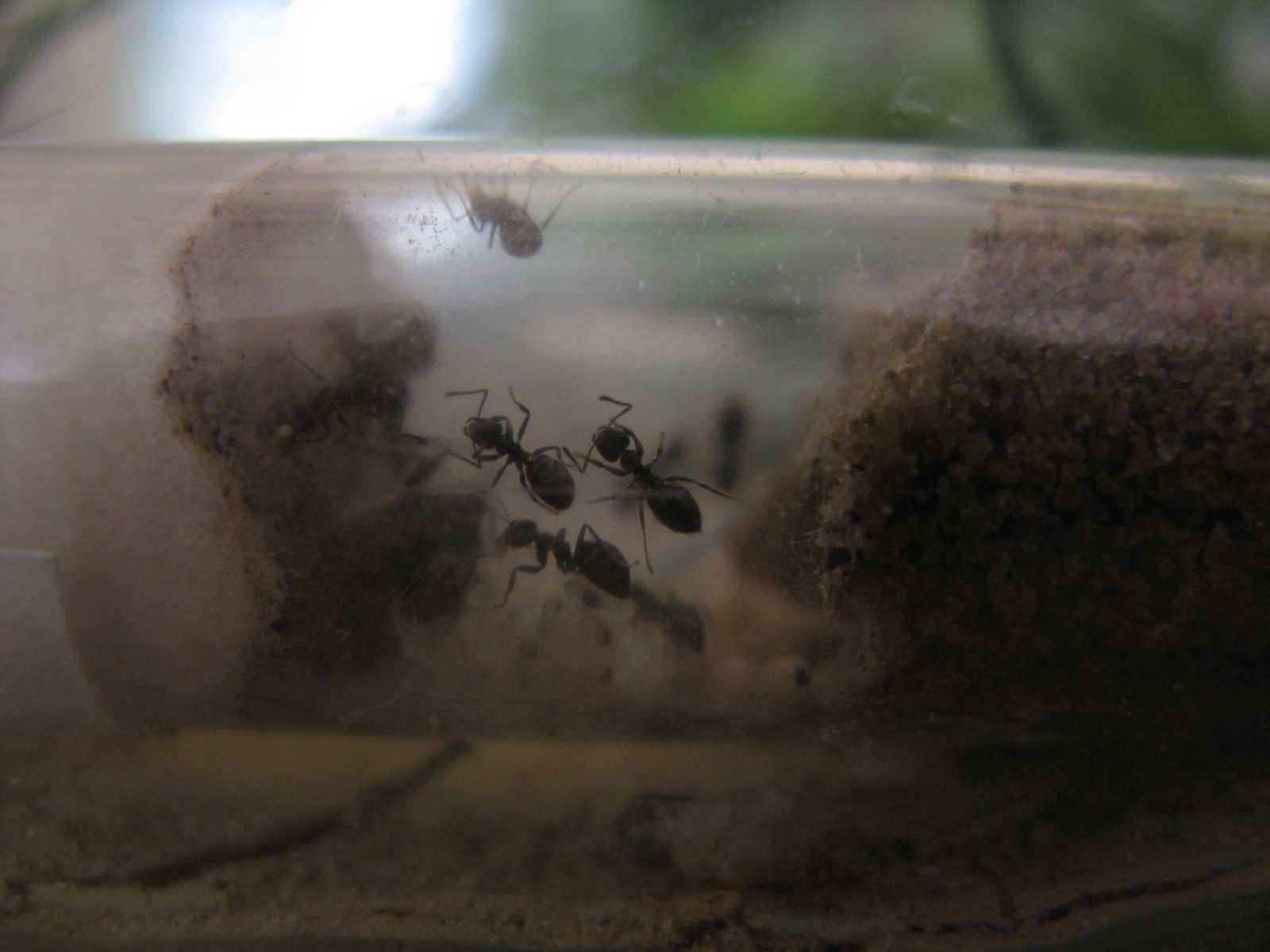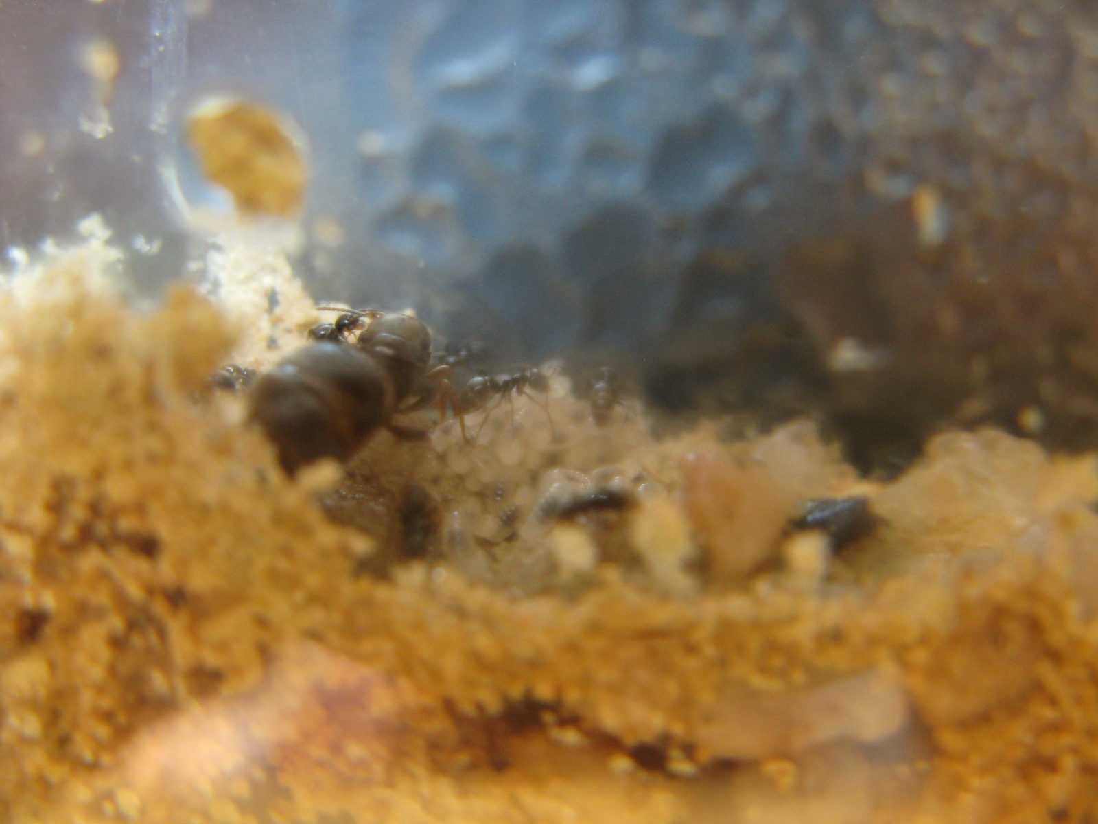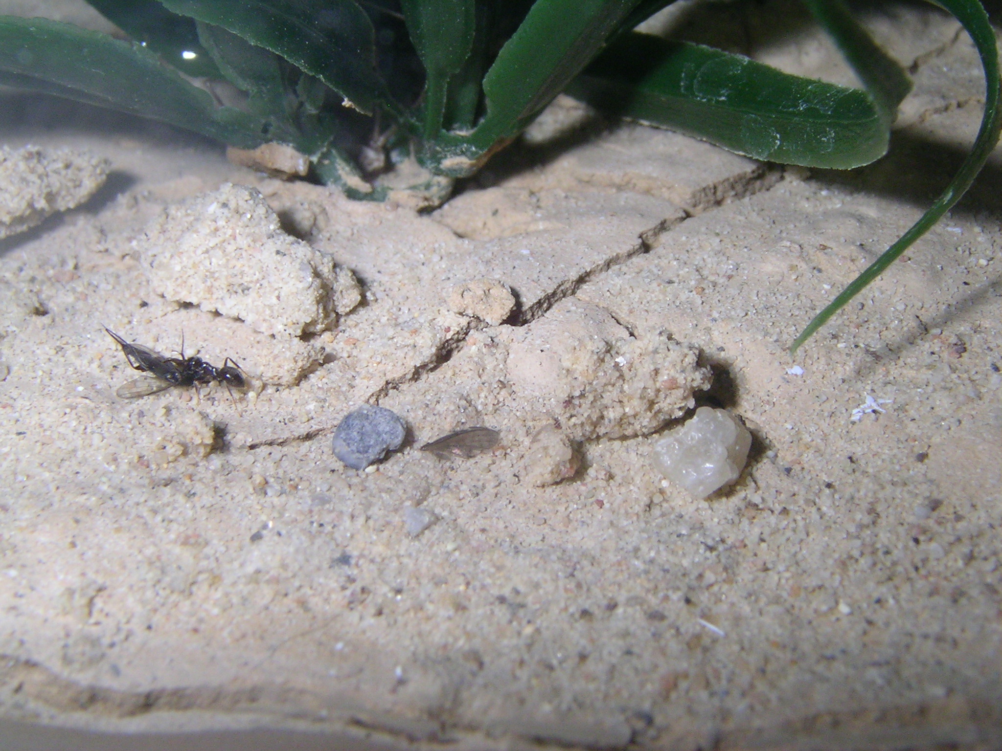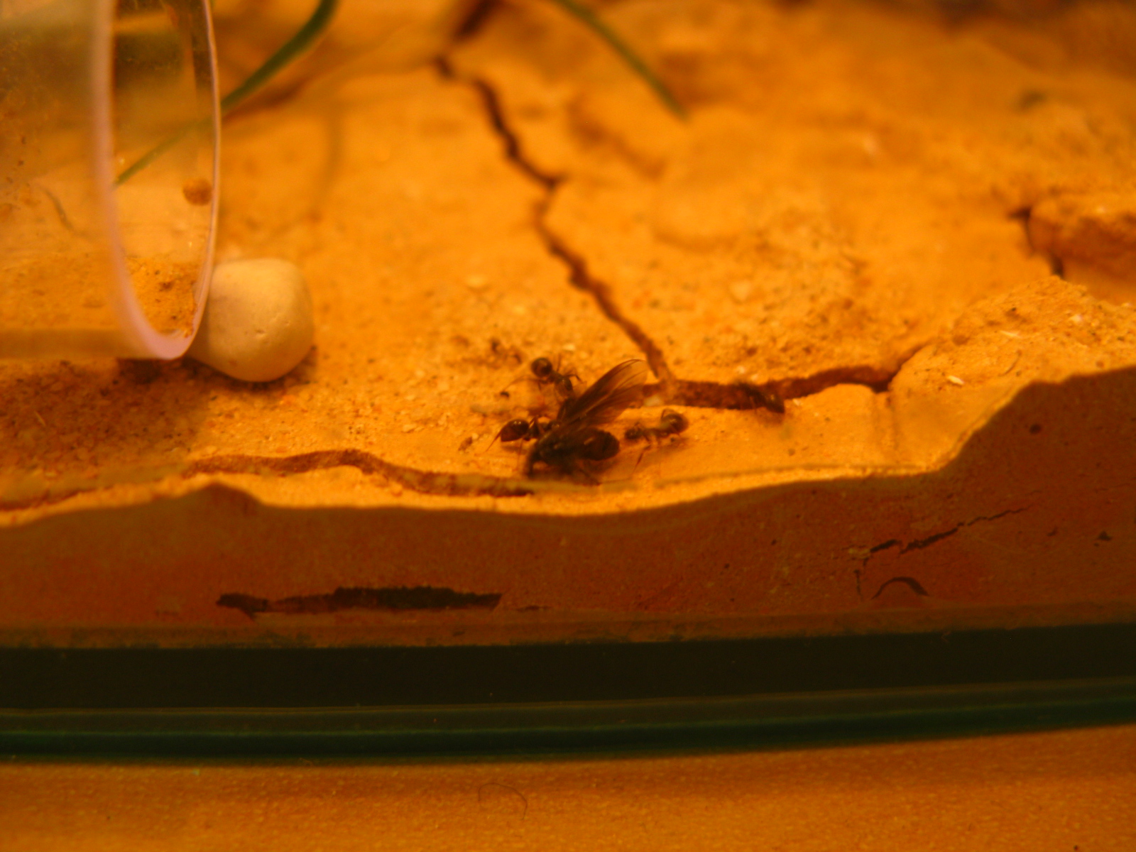 Zur Koloniegröße: Verluste sind erst meiner Meinung nach 2 vorgekommen, beide im Fressen gestorben. Es sind aber wie erwähnt immer neue geschlüpft und es müssten mitlerweile an die 30 + - 5 Ants sein also sie entwickelt sich langsam aber stätig.