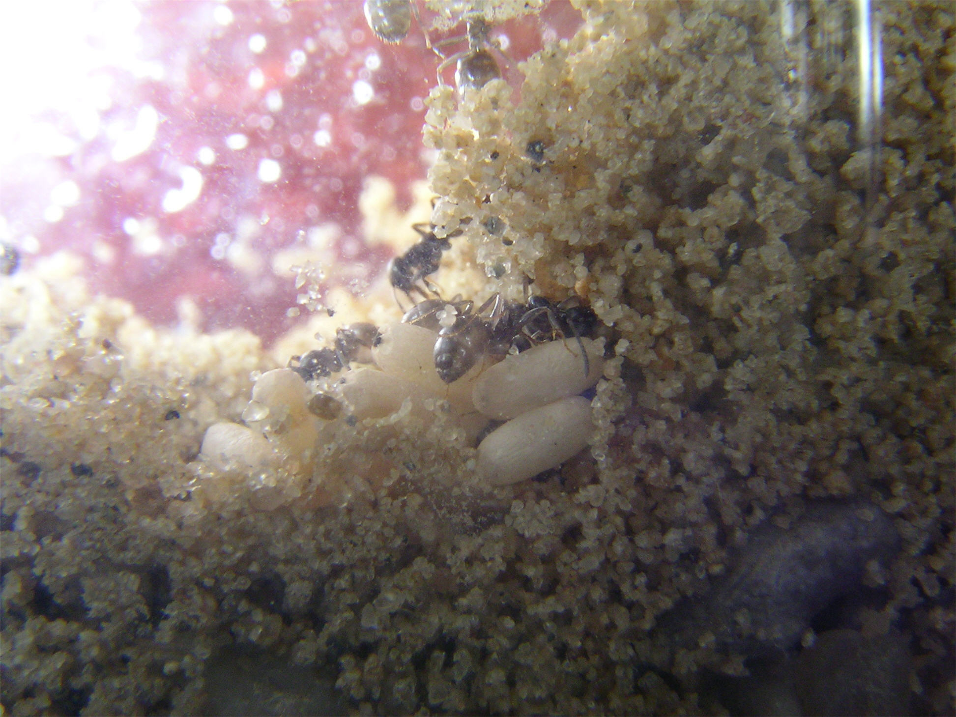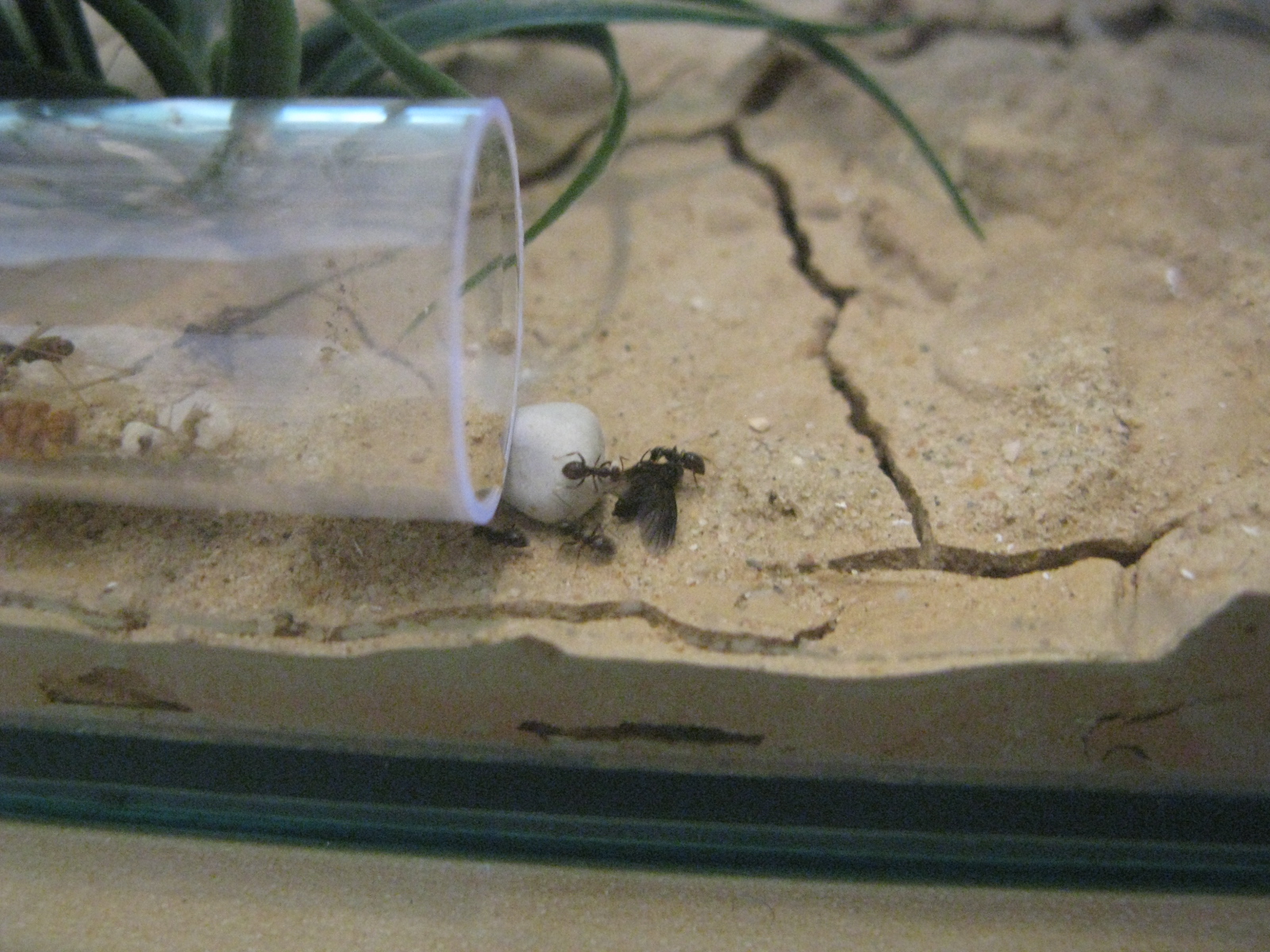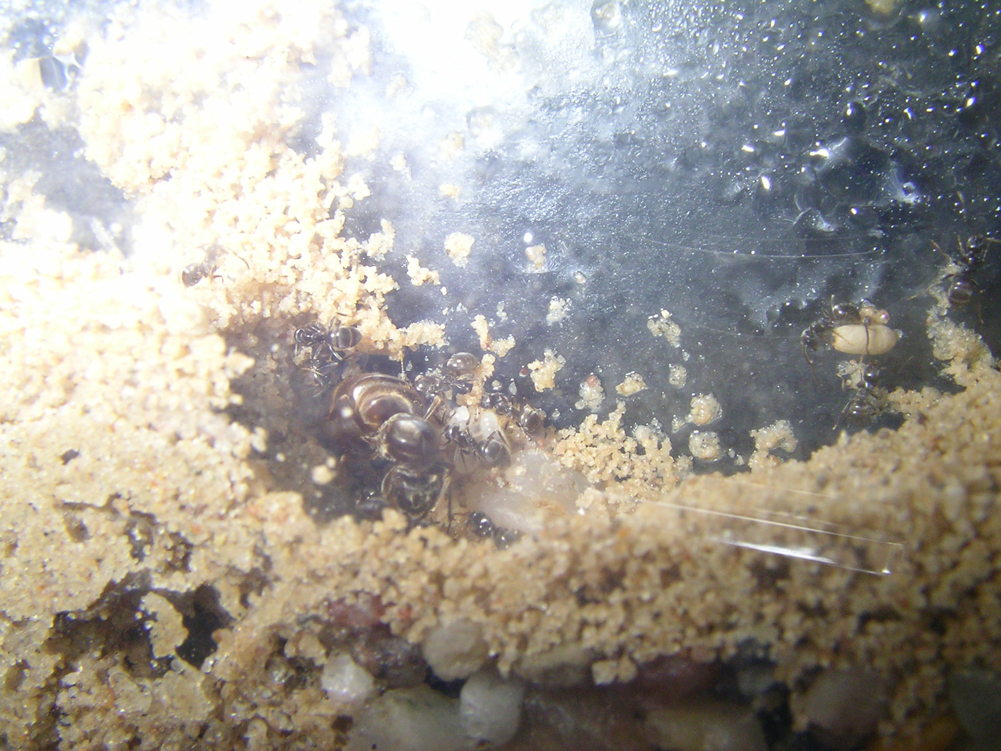 Ihre Aktivität hat sich seit dem Umzug auch nicht wirklich gesteigert, immer mal wieder ein bis zwei Ants im Formi. aber was lange währt wird gut 8) .