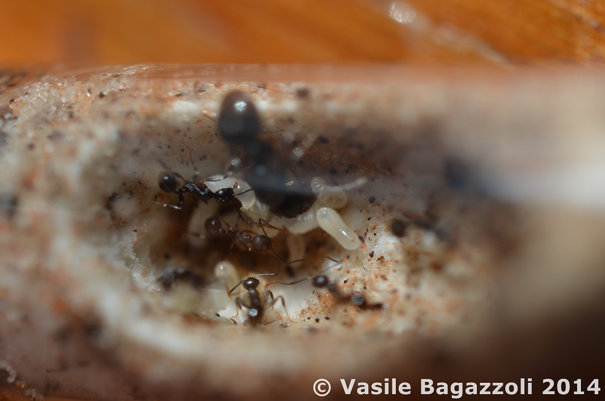 The last photo is a different chamber nest which holds a small, young colony of Aphaenogaster fulva (a local species). There's eggs, larvae and pupae in the last photo.