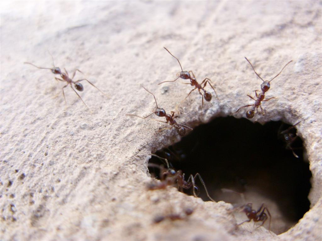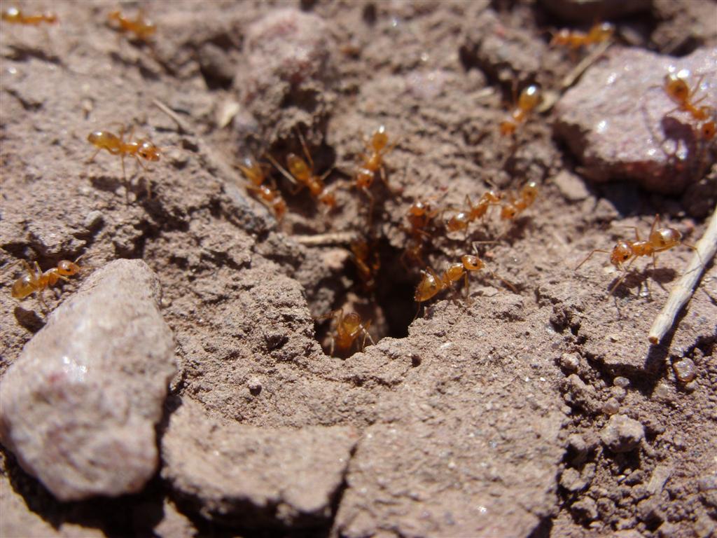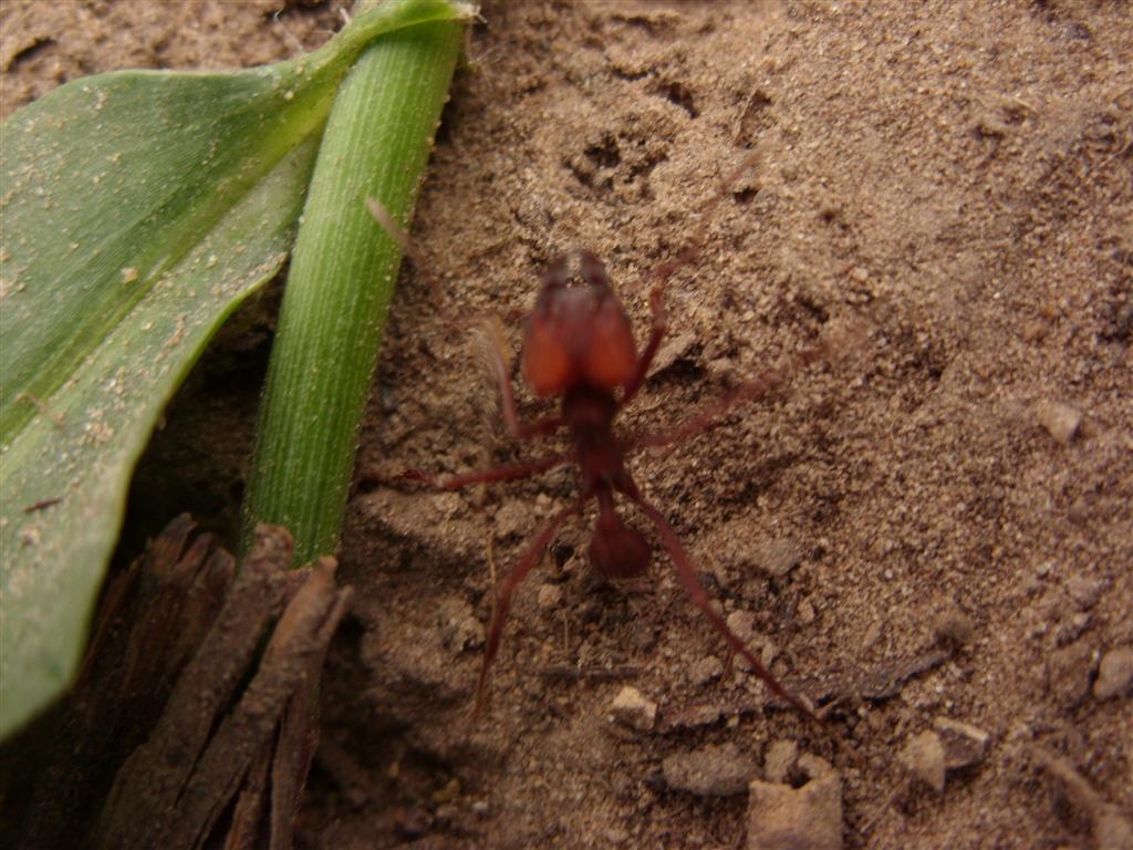 Von diesen roten Winzlingen gab es direkt vor einem Lagerhaus tausende. Sie kamen nur bei direkter Sonneneinstrahlung raus, wuselten dann aber wie bekloppt. Eine Ameise konnte ich von einer Futterstelle aus verfolgen, bis sie nach mehr als 15 Metern (!) ihr Nest erreichte, welches ich auch da erst entdeckte. Zum Nachdenken: die Arbeiterin war nicht größer als 4 oder 5 mm.