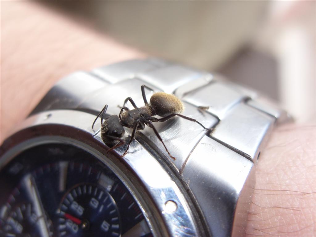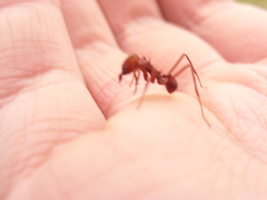 Hier sehr ihr die intelligenten argentinischen Ameisen einer Art, die ich nicht zu identifizieren vermag. Jedenfalls wollte sie, als ich sie auf die Hand setzte, gleich nach der Uhrzeit schauen. :D Netterweise saß sie dort eine ganze Weile sehr ruhig und gab mir die Gelegenheit für diese Fotos.