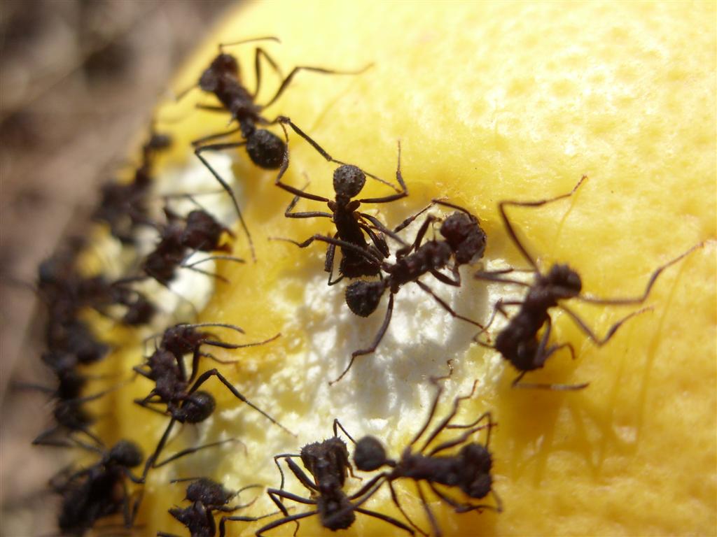 Sie haben eine Zitrone gefunden, die dort von einem Baum gefallen sein muss (ja, die wachsen da am Baum!) und haben fachgerecht die Schale abtransportiert. Das Innere schien sie nicht so sehr zu interessieren. Ich fand es spannend!