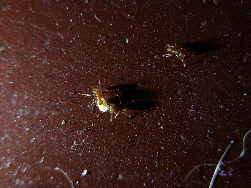 Hier mein letzter Bildbeitrag. Diese winzigen Ameisen entdeckte ich eher zufällig, als ich mir die Fugen auf dem Boden unseres Zimmers ansah. Ich hatte kein Lineal dabei, aber heute denke ich, dass sie kaum größer als 1mm waren. Ohne den Blitz der Kamera wirkten sie ganz schwarz und wir hatten sie auf den ersten Blick für Krümel gehalten bis sich die "Krümel" bewegten.