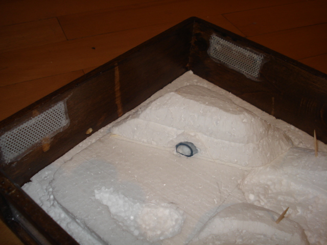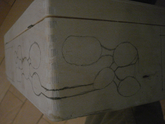 Mitlerweile habe ich auch dem Deckel einen Nussbaum Look verpasst. Auch wurde alles was Holz ist mit 5 Schickten Klarlack überzogen. Vorher natürlich alles schön glatt geschliffen.
