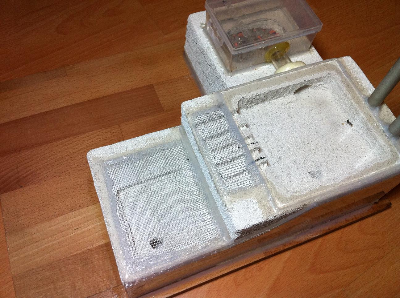 3. Die Nestrer hätte ich andersherum reingepackt, Grund: dann würden die Gänge zu den Kammern oben sein. so kann keine Brut aus der Kammer fallen.