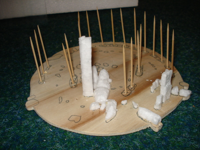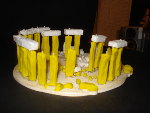EDIT: Ich möchte jetzt hier nicht die Spannung nehmen aber ich habe mal gesucht und es scheint sich wirklich um Stonehenge zu handeln. Ich gehe mal davon aus , dass du die Zahnstocher als Halter nimmst für Baumaterial wie Ton oder ähnliches um darauf die Steine zu formen.